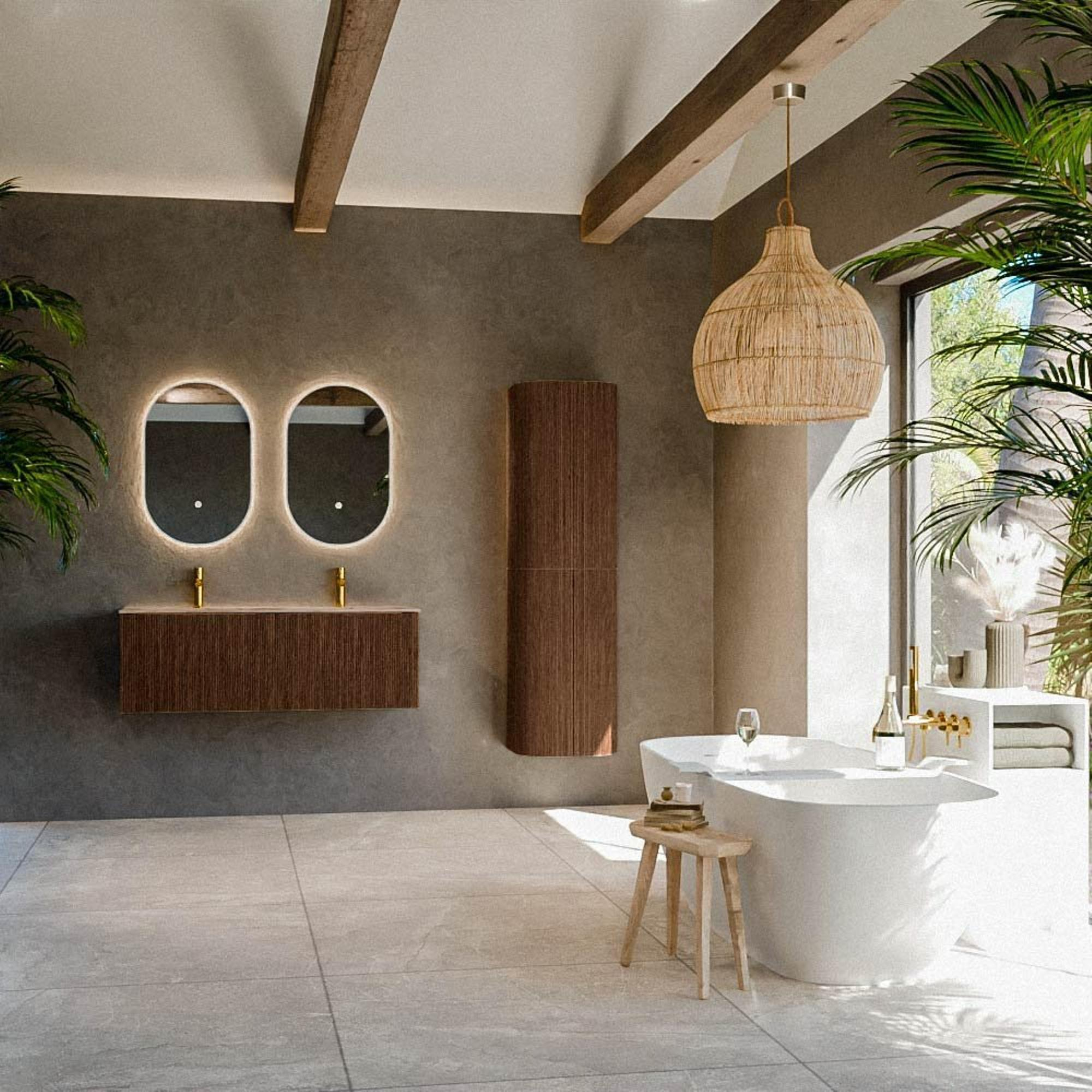 Ce meuble de salle de bains élégant est un choix parfait si vous souhaitez combiner dans votre salle de bains une apparence luxueuse et chaleureuse avec un espace de rangement astucieux et une utilisation quotidienne pratique. Grâce à sa largeur généreuse, il est idéal pour une salle de bains familiale ou une salle de bains partagée où vous aimez commencer ou terminer la journée à deux en même temps. Le décor bois chaud apporte immédiatement de l’atmosphère dans un espace moderne et design, mais s’accorde aussi parfaitement avec un style de salle de bains naturel et hôtel-chic. Le lavabo double rend les matinées chargées plus organisées, tandis que la fixation murale épurée libère le sol et donne à votre salle de bains une impression d’espace. Si vous optez pour une combinaison réfléchie de design, de confort et de facilité d’entretien, ce meuble s’intègre alors parfaitement dans la salle de bains de vos rêves.