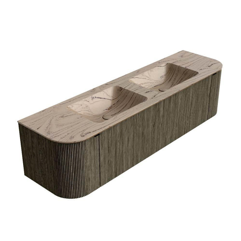 MONDIAZ KURVE-DLUX Meuble de salle de bains 170cm arrondi Gauche + Droite couleur Shadow avec 1 tiroir et 2 portes. Lavabo LEAF Double 2 trous de robinet Arena.