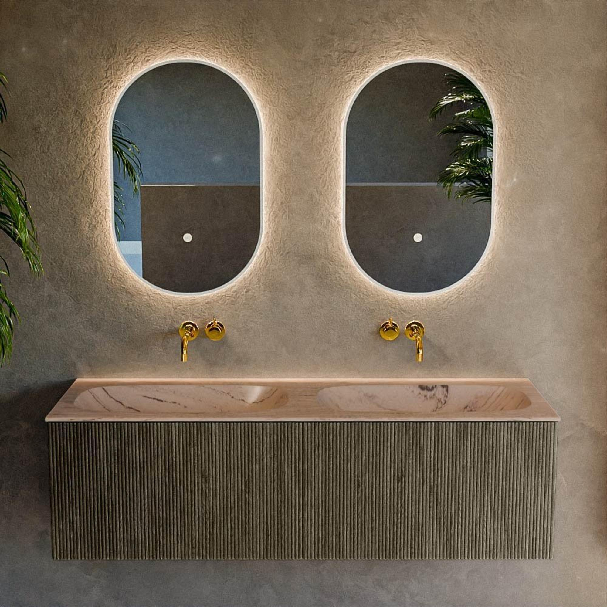 Vous recherchez un meuble de salle de bains luxueux qui crée immédiatement une base calme et élégante pour votre salle de bains tout en offrant suffisamment d’espace de rangement ? Alors ce meuble généreux de 140 cm est un choix judicieux. La combinaison de la couleur gris ombre profonde du meuble bas et du plan-vasque chaleureux Arena donne à votre salle de bains une ambiance d’hôtel moderne, sans être froide. Grâce aux deux vasques, placées de manière symétrique, ce meuble est idéal pour les matinées chargées avec deux utilisateurs ou pour ceux qui aiment simplement avoir leur propre côté. Les tiroirs sans poignées avec système push-to-open assurent une façade épurée et rendent le meuble très agréable à utiliser, même dans les espaces plus petits où vous ne souhaitez pas de poignées saillantes. Grâce au montage mural, le sol reste libre, ce qui donne non seulement une impression d’espace, mais rend également le nettoyage beaucoup plus simple.