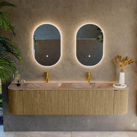 Les formes arrondies aussi bien du côté gauche que du côté droit confèrent à ce meuble une allure accueillante et organique qui attire immédiatement le regard. Au lieu de lignes dures, vous obtenez une forme douce et fluide qui donne à votre salle de bains davantage de calme et d’espace sur le plan visuel. La couleur Dusk avec structure bois s’harmonise à merveille avec des styles populaires comme le moderne, le scandinave et l’hôtel chic, et se combine facilement avec des carreaux clairs comme foncés. Les façades à nervures verticales apportent davantage de profondeur et de luxe, sans être tape-à-l’œil. Vous créez ainsi un meuble de salle de bains qui n’est pas seulement fonctionnel, mais qui instaure aussi une véritable ambiance et reste beau pendant de nombreuses années dans votre intérieur.
