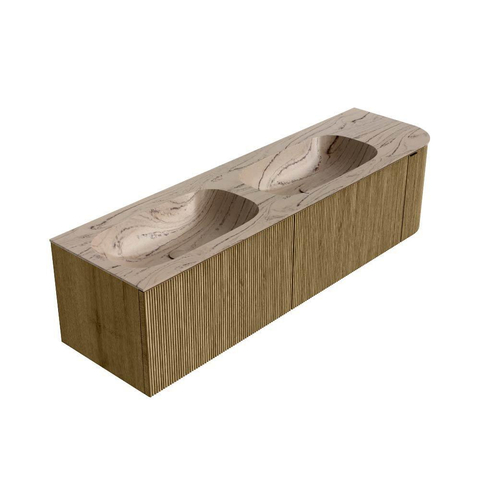 MONDIAZ KURVE-DLUX Meuble de salle de bains 165cm arrondi Droite couleur Dusk avec 2 tiroirs et 1 porte. Lavabo STOR SMALL Double / Gauche 2 trous de robinet Arena.