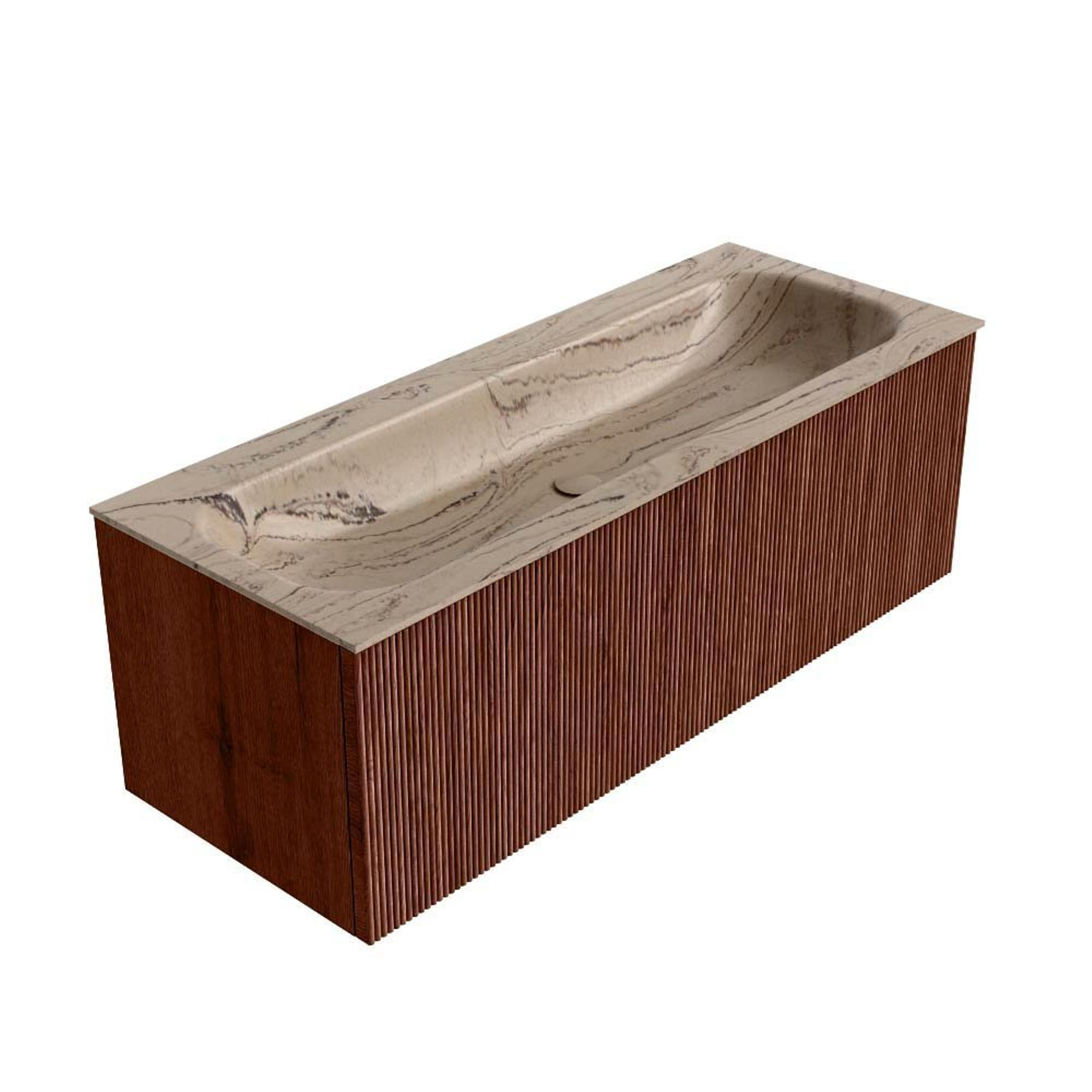 MONDIAZ KURVE-DLUX Meuble de salle de bains 120 cm couleur Ruby avec 1 tiroir et 0 porte. Lavabo BIG LARGE central sans trou de robinet Arena.