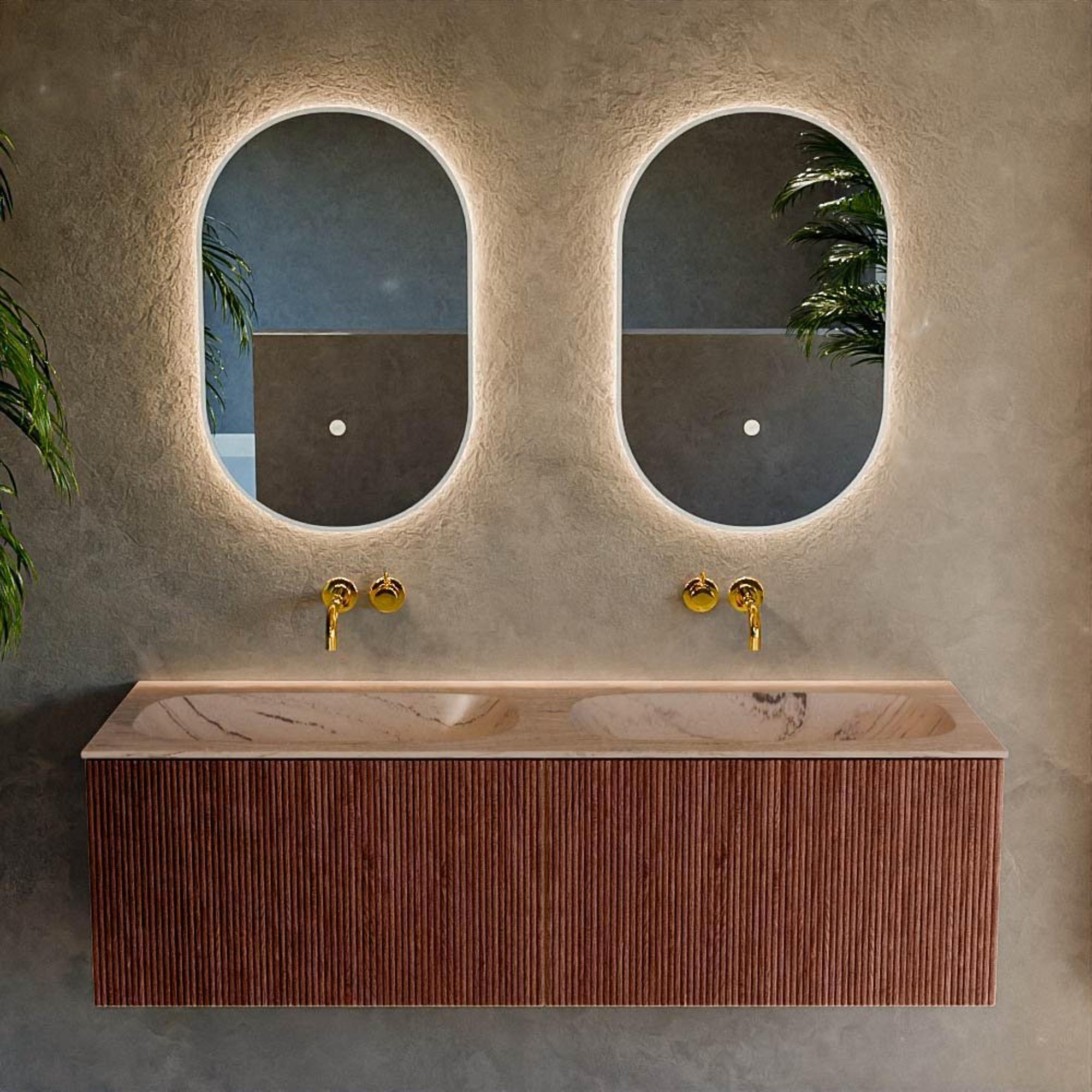 MONDIAZ KURVE-DLUX 140cm badmeubel kleur Ruby met 2 lades en 0 deuren. Wastafel STOR SMALL Dubbel zonder kraangat Arena.