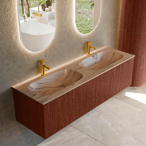 MONDIAZ KURVE-DLUX 150cm badmeubel kleur Ruby met 2 lades en 0 deuren. Wastafel STOR SMALL Dubbel 2 kraangaten Arena.