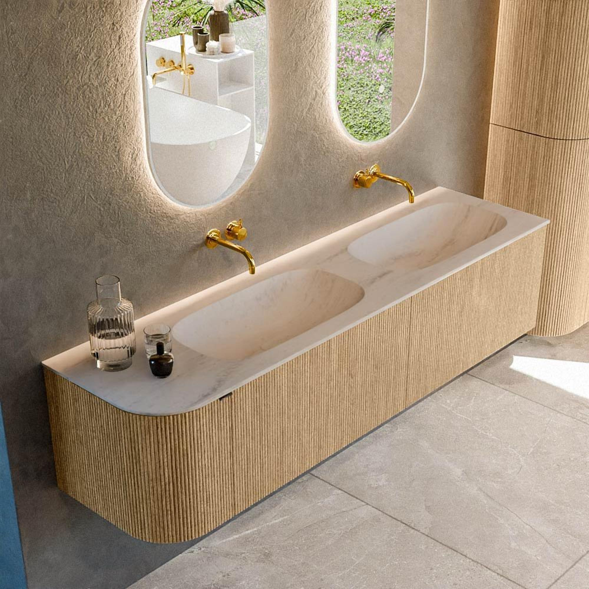 - Double vasque STOR SMALL à droite, parfaite pour une utilisation simultanée par deux personnes.