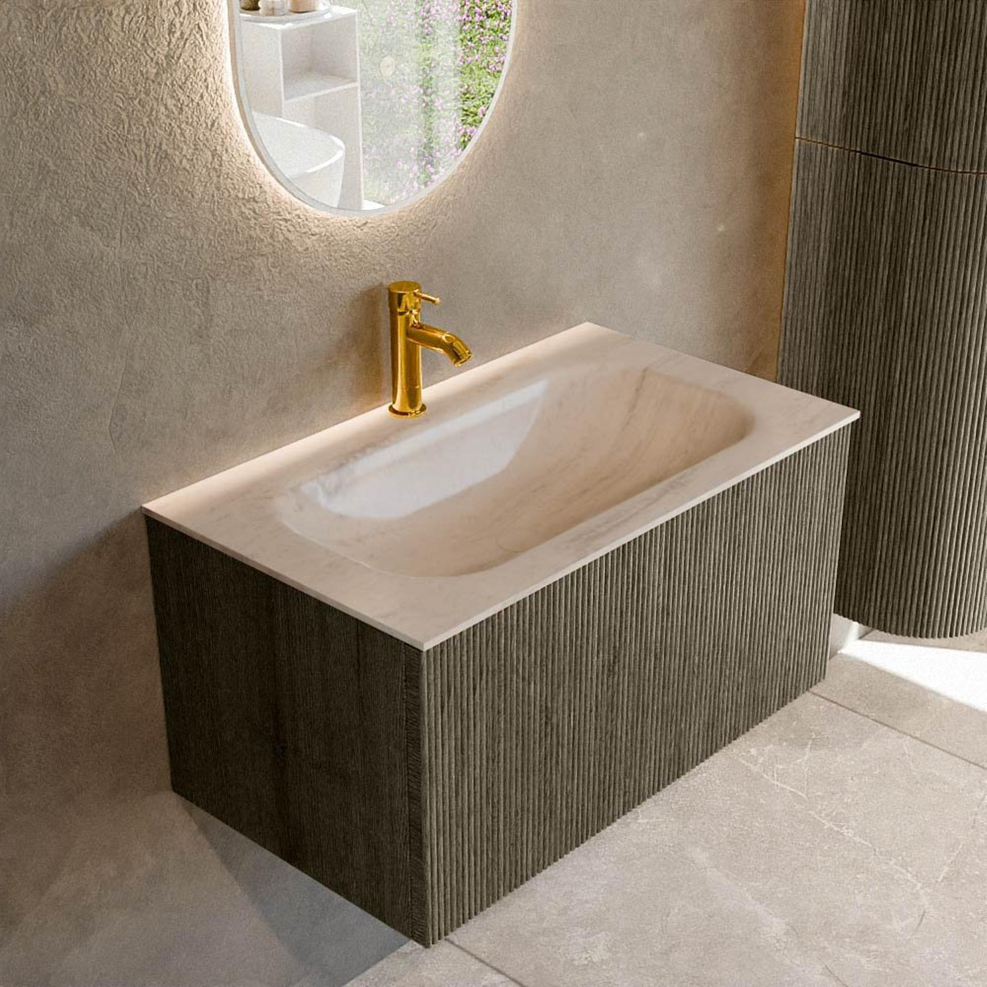 MONDIAZ KURVE-DLUX Meuble de salle de bains 80 cm couleur Shadow avec 1 tiroir et 0 porte. Lavabo BIG SMALL Central 1 trou de robinet Meli.