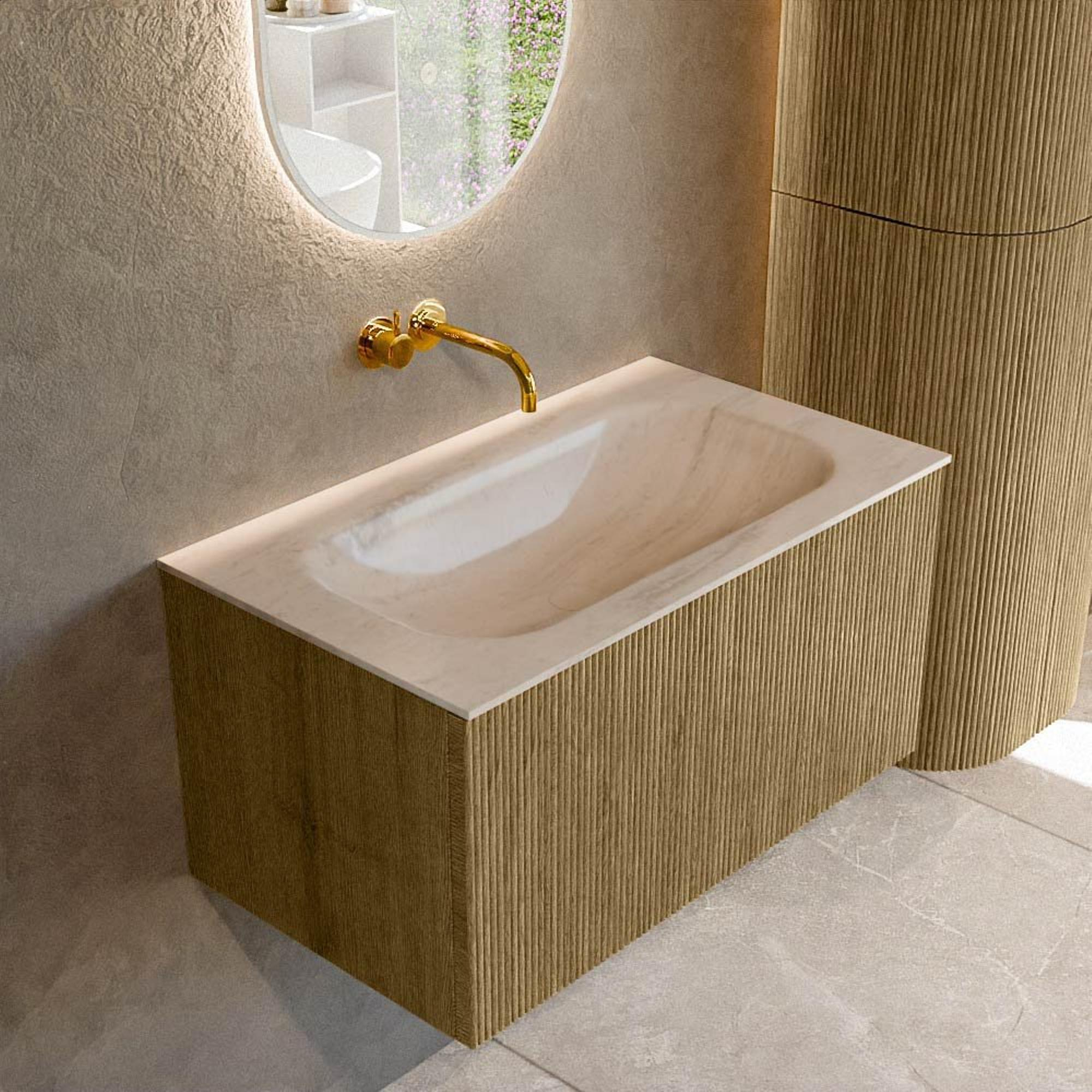 MONDIAZ KURVE-DLUX 80cm badmeubel kleur Dusk met 1 lade en 0 deuren. Wastafel BIG SMALL Midden zonder kraangat Meli.