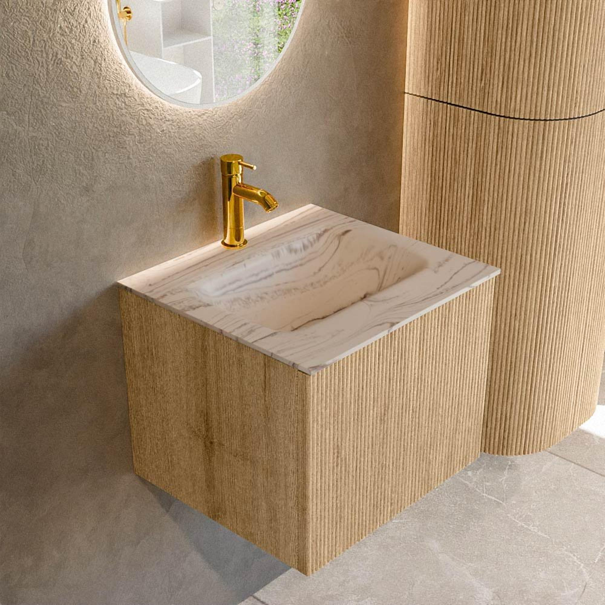 MONDIAZ KURVE-DLUX Meuble de salle de bains 50cm couleur Chêne avec 1 tiroir et 0 porte. Lavabo GRUNNE Central 1 trou de robinet Nata.