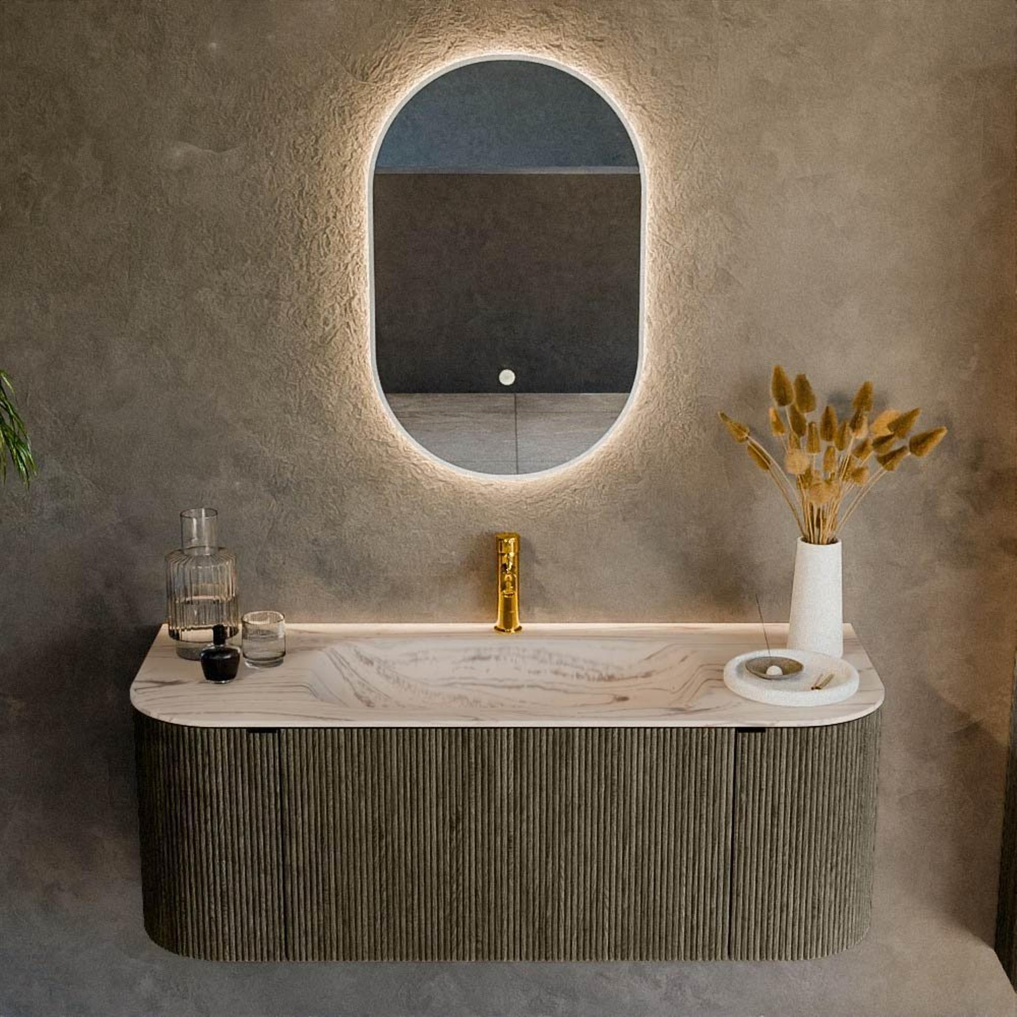 La couleur Shadow est une teinte de gris profonde et élégante qui dégage chaleur et luxe sans être dominante. La façade nervurée verticale confère au meuble une apparence exclusive et crée un beau jeu de lumière et d'ombres, surtout en combinaison avec un bon éclairage de salle de bains. Grâce à cette texture, le meuble paraît moins « plat » que les façades standard et vous faites réellement de votre zone lavabo un véritable point de mire. La teinte grise se combine en outre parfaitement avec des carreaux clairs ou foncés, des robinets noirs, des accents en inox ou des matériaux naturels comme le bois et la pierre. Vous créez ainsi facilement un ensemble cohérent et haut de gamme dans l'ensemble de votre salle de bains.