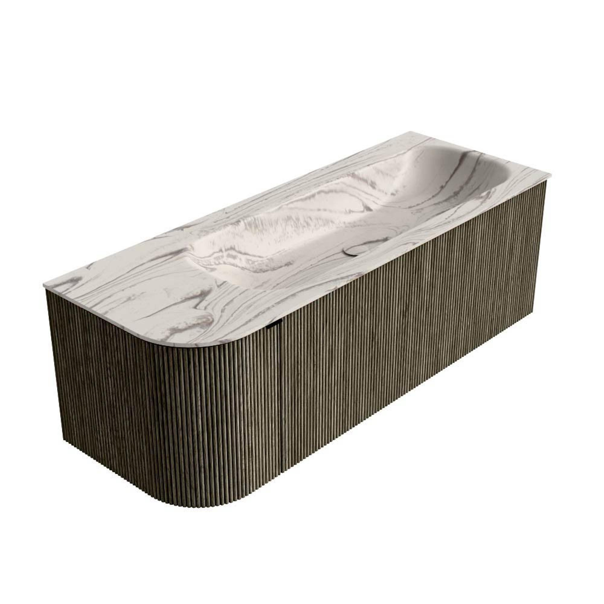 MONDIAZ KURVE-DLUX Meuble de salle de bains 125cm arrondi à gauche couleur Shadow avec 1 tiroir et 1 porte. Lavabo BIG MEDIUM à droite sans trou de robinet Nata.
