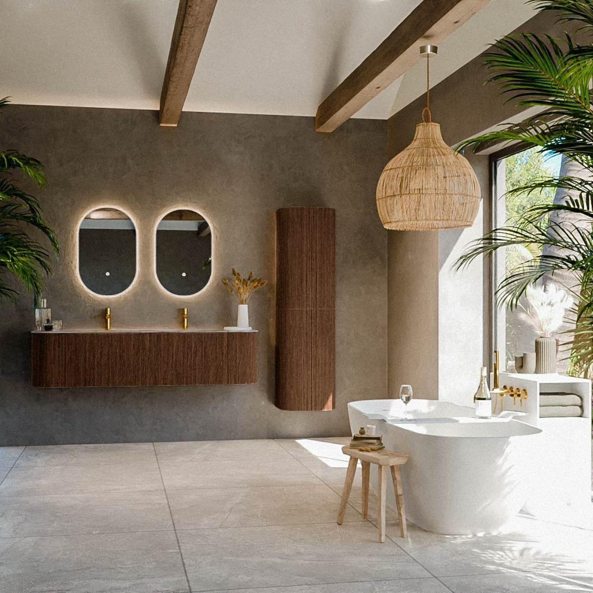 - Configuration à double vasque, idéale pour les familles, les couples et les matins chargés.