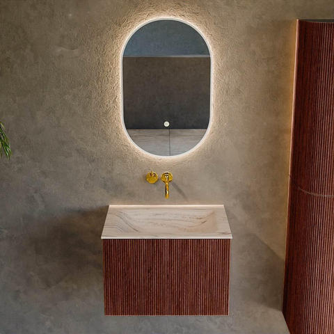 MONDIAZ KURVE-DLUX 60cm badmeubel kleur Ruby met 1 lade en 0 deuren. Wastafel CLOUD Midden zonder kraangat Nata.