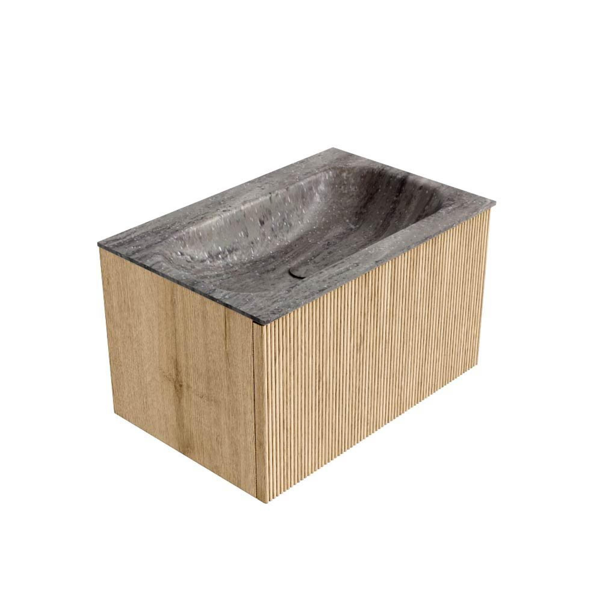 MONDIAZ KURVE-DLUX Meuble de salle de bains 70cm couleur Oak avec 1 tiroir et 0 porte. Lavabo BIG SMALL Central sans trou de robinet Oza.