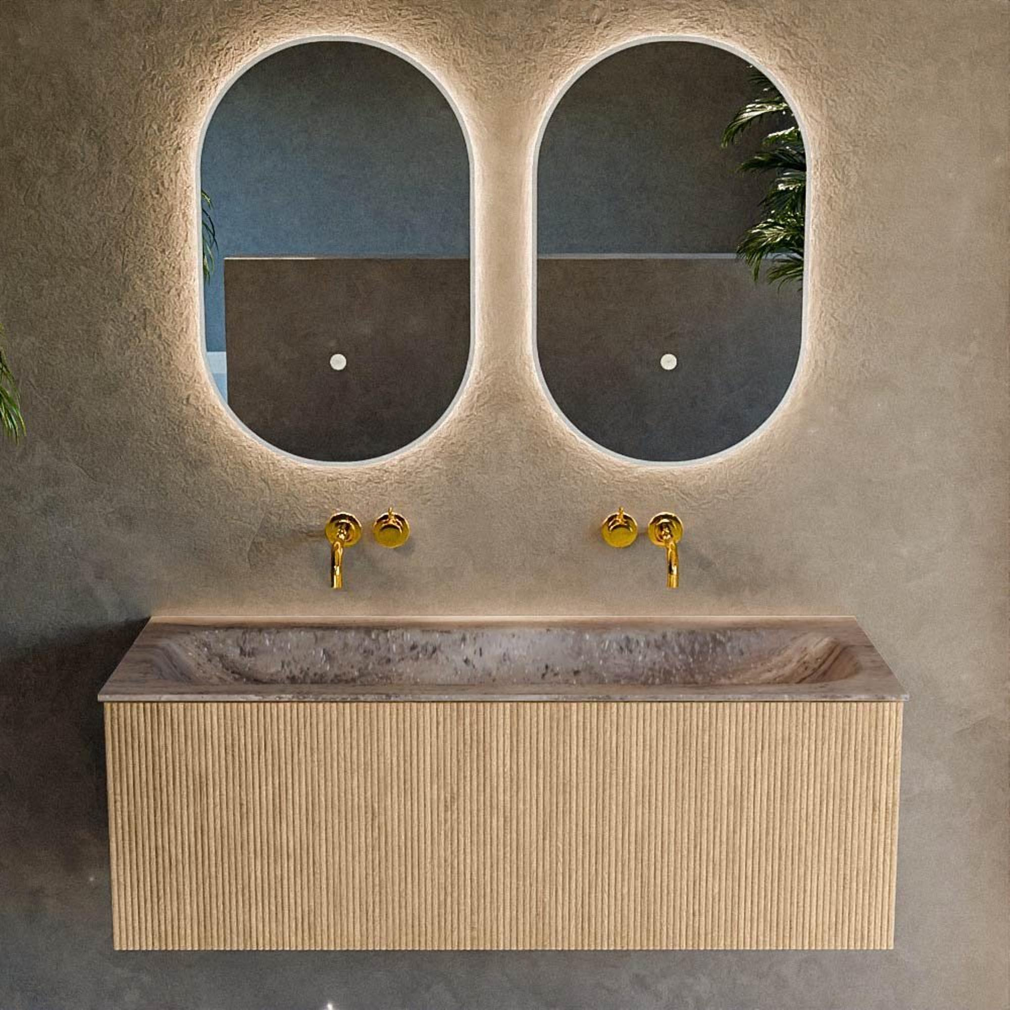 La couleur chaude Oak et la façade à rainures verticales donnent immédiatement à votre salle de bains une apparence haut de gamme, presque comme à l’hôtel. La structure bois naturelle apporte de la chaleur dans une pièce souvent perçue comme froide, surtout en combinaison avec le carrelage et le verre. Grâce aux lignes horizontales du meuble large, votre salle de bains paraît en outre plus profonde et plus spacieuse, même si vous ne disposez pas de beaucoup de mètres carrés. La forme rectangulaire épurée et l’absence de poignées visibles assurent un look minimaliste qui se marie joliment avec des robinets et accessoires noirs, chromés ou en métal brossé. Vous créez ainsi facilement un ensemble cohérent, que vous aménagiez une toute nouvelle salle de bains ou que vous remplaciez simplement votre ancien meuble.