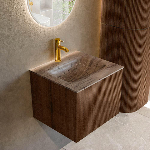 MONDIAZ KURVE-DLUX Meuble de salle de bains 50cm couleur Walnut avec 1 tiroir et 0 porte. Lavabo GRUNNE Central 1 trou de robinet Oza.