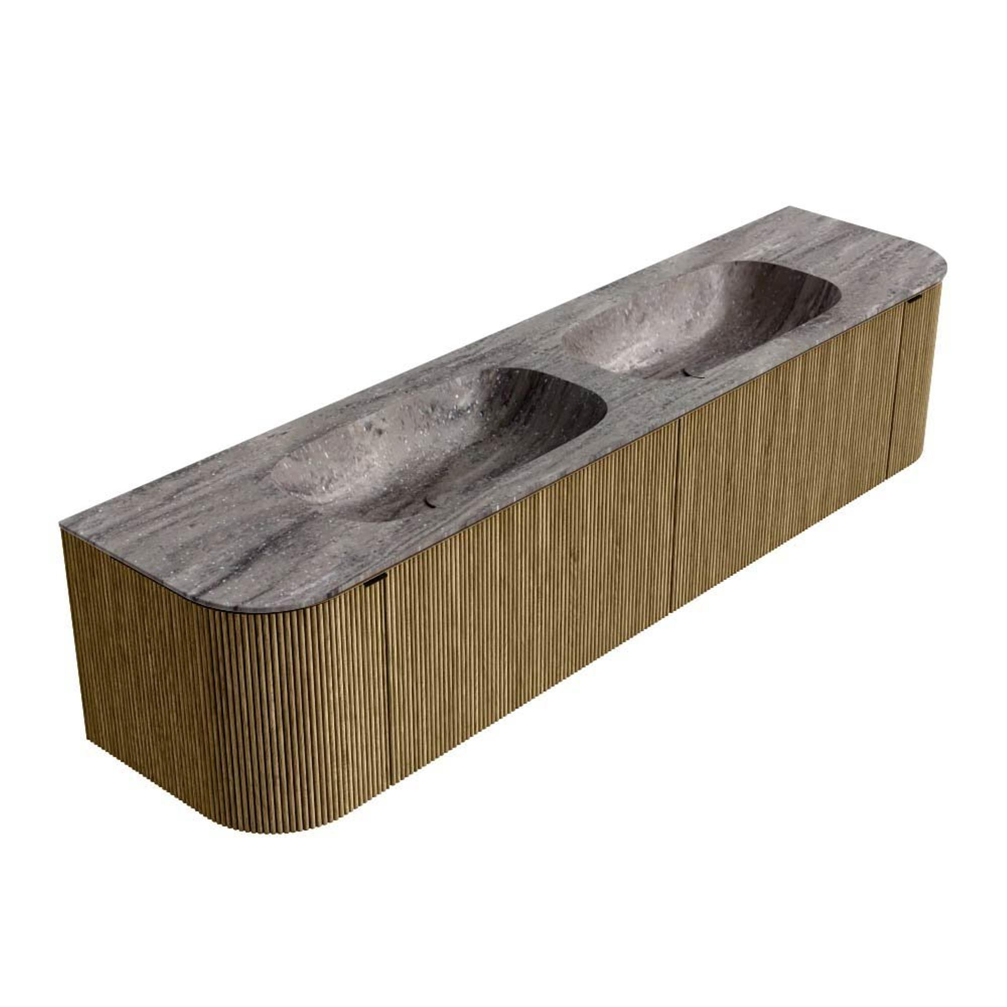 MONDIAZ KURVE-DLUX Meuble de salle de bains 190cm arrondi Gauche + Droite couleur Dusk avec 2 tiroirs et 2 portes. Plan-vasque STOR SMALL Double 2 trous de robinet Oza.