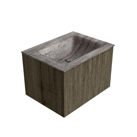 MONDIAZ KURVE-DLUX Meuble de salle de bains 60 cm couleur Shadow avec 1 tiroir et 0 porte. Lavabo CLOUD Central sans trou de robinet Oza.