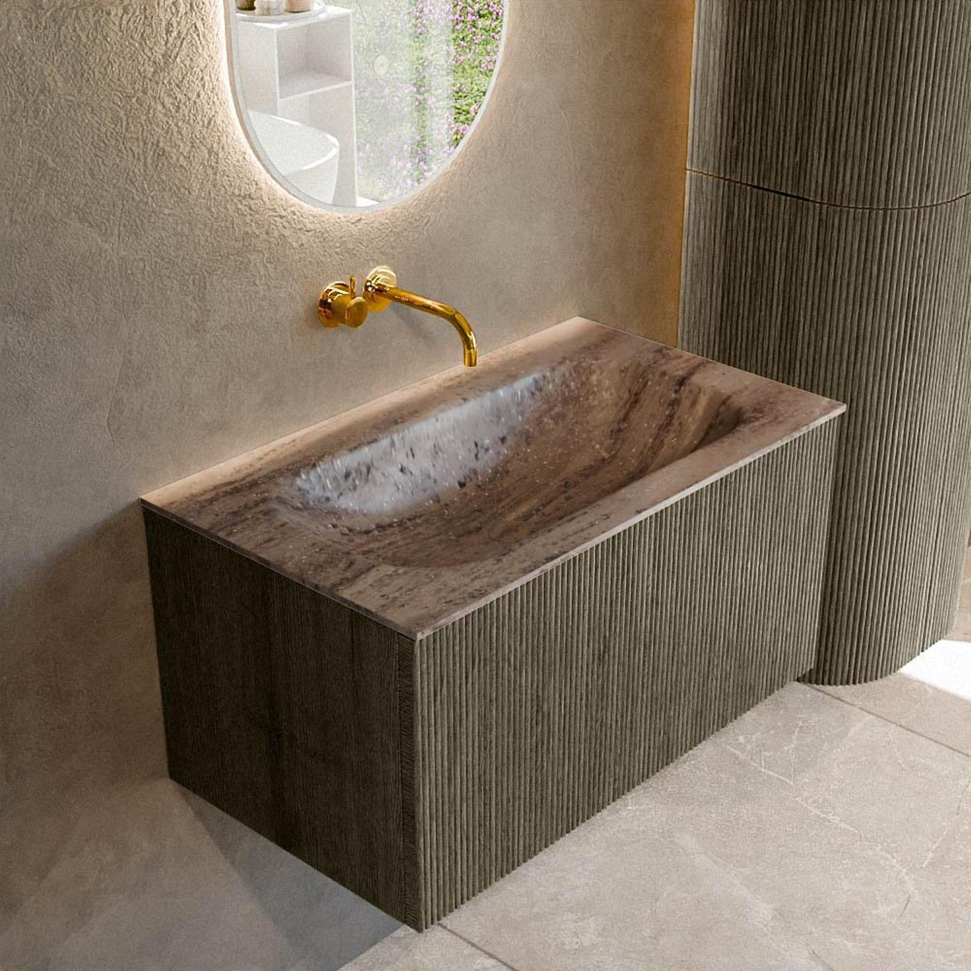 MONDIAZ KURVE-DLUX Meuble de salle de bains 80cm couleur Shadow avec 1 tiroir et 0 porte. Vasque BIG SMALL Central sans trou de robinet Oza.