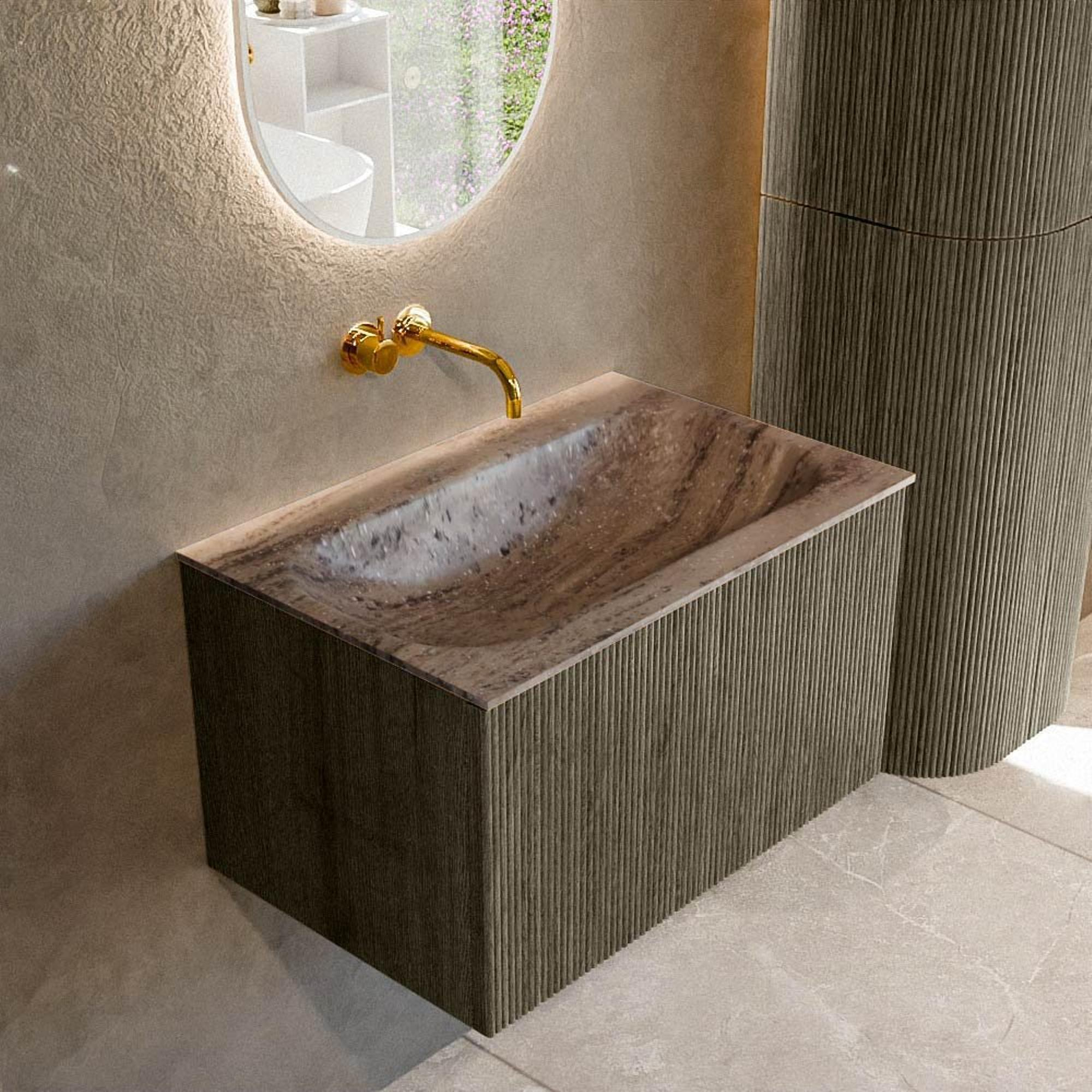 MONDIAZ KURVE-DLUX 70cm badmeubel kleur Shadow met 1 lade en 0 deuren. Wastafel BIG SMALL Midden zonder kraangat Oza.