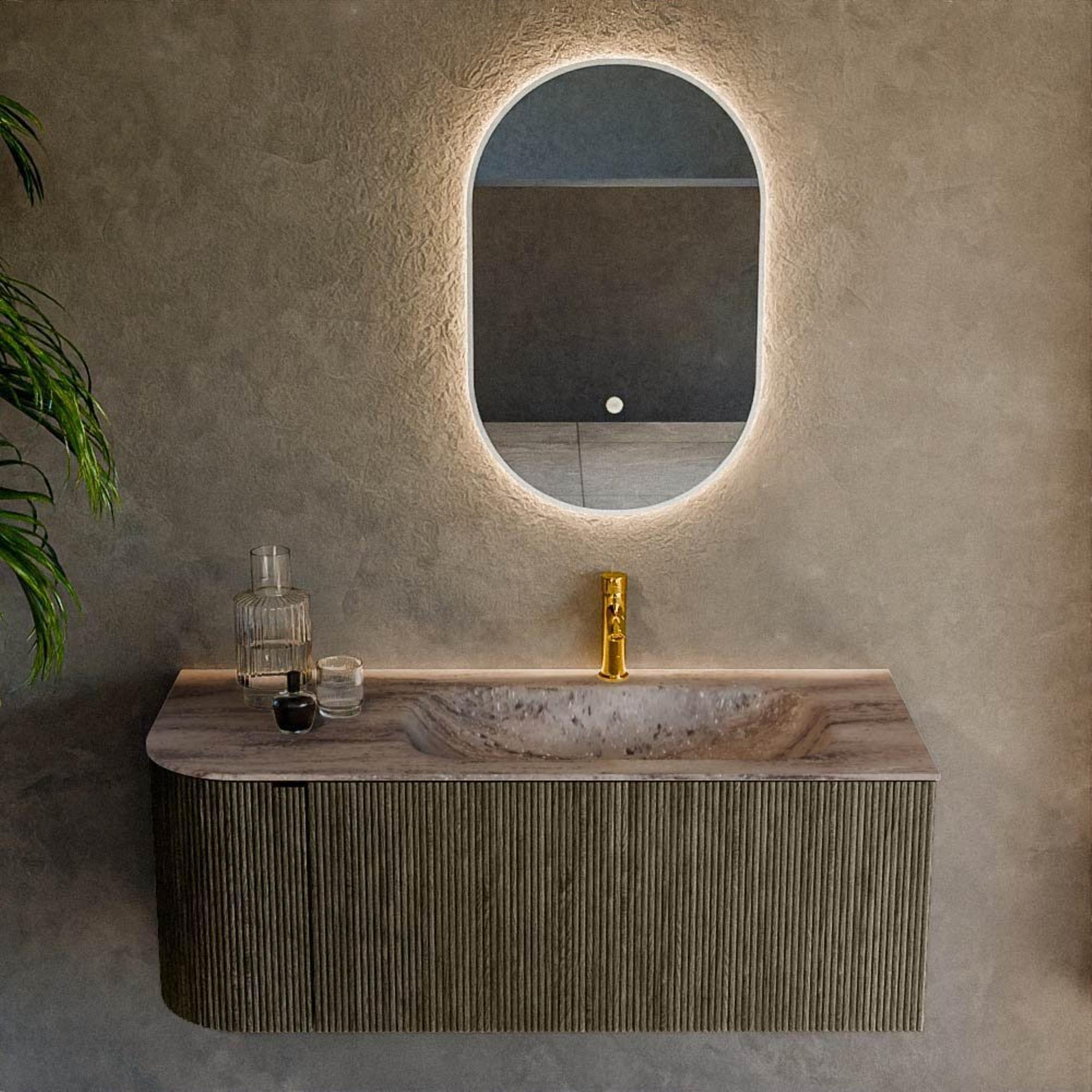 La couleur Shadow combinée à la façade nervurée verticale confère à ce meuble un aspect luxueux, digne d’un intérieur, qui semble tout droit sorti d’un magazine de décoration. La teinte grise se combine facilement avec des styles de salle de bains populaires comme le moderne, l’industriel et le scandinave. Pensez à des carreaux aspect béton, à des accents noirs ou au contraire à des tons de bois chaleureux : tout s’accorde sans effort avec cette couleur neutre mais pleine de caractère. La structure 3D de la façade ajoute de la profondeur et un jeu de lumière ludique, tandis que les formes arrondies assurent un look doux et accueillant. Votre meuble vasque devient ainsi un véritable accroche-regard, sans être tape-à-l’œil. Parfait si vous souhaitez que votre salle de bains ait une apparence calme mais très réfléchie.