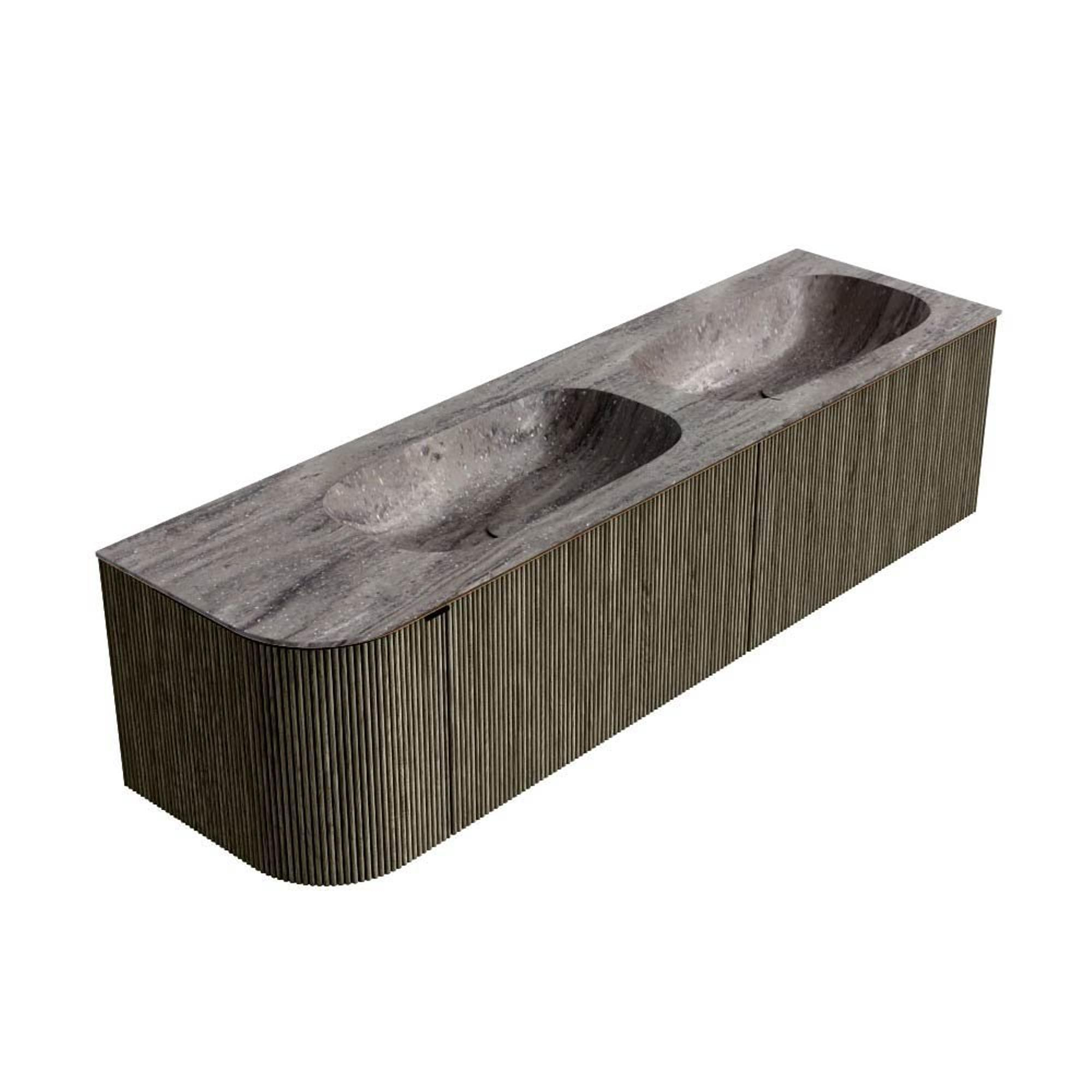 MONDIAZ KURVE-DLUX Meuble de salle de bains 165cm arrondi à gauche couleur Shadow avec 2 tiroirs et 1 porte. Lavabo STOR SMALL Double / Droit 2 trous de robinet Oza.