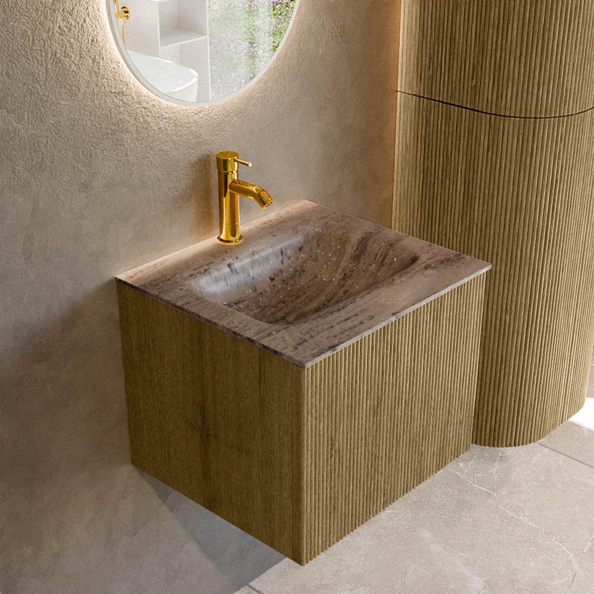 MONDIAZ KURVE-DLUX 50cm badmeubel kleur Dusk met 1 lade en 0 deuren. Wastafel GRUNNE Midden 1 kraangat Oza.