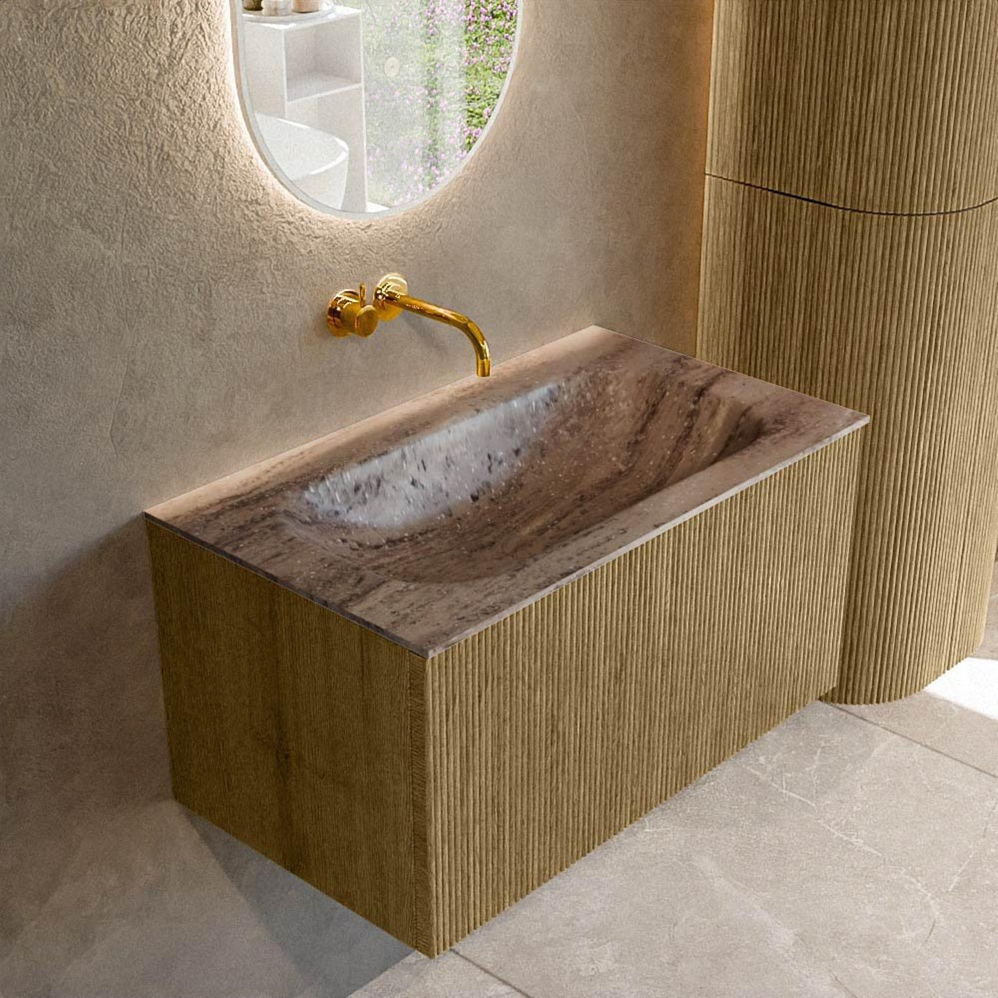 MONDIAZ KURVE-DLUX 80cm badmeubel kleur Dusk met 1 lade en 0 deuren. Wastafel BIG SMALL Midden zonder kraangat Oza.