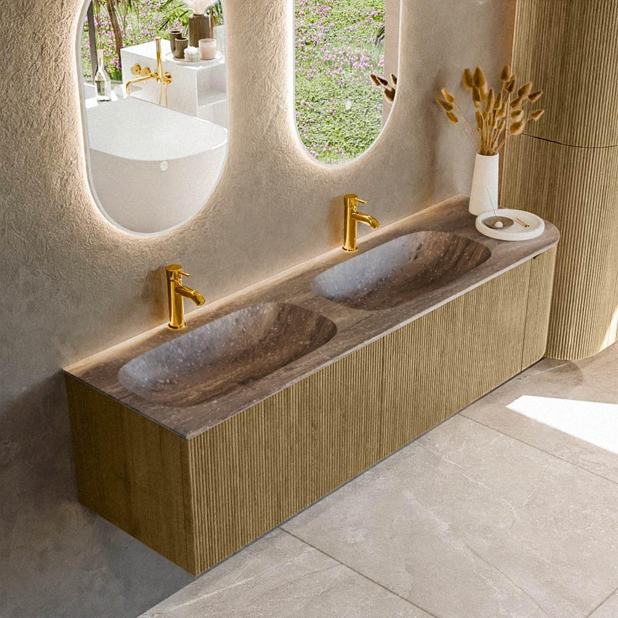 Design étudié avec courbure douce et lavabo double