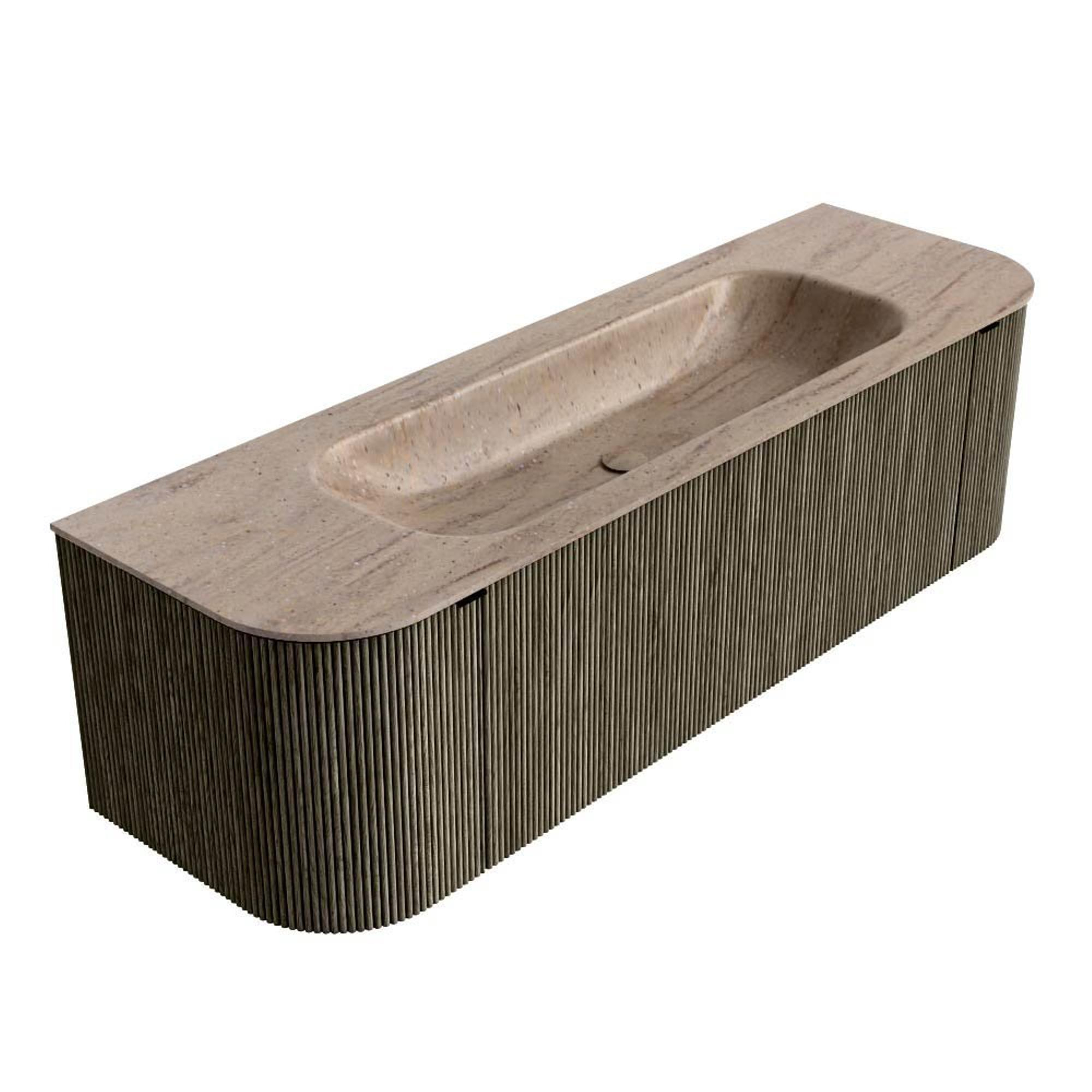 MONDIAZ KURVE-DLUX Meuble de salle de bains 150cm arrondi Gauche + Droite couleur Shadow avec 1 tiroir et 2 portes. Lavabo BIG MEDIUM Central 1 trou de robinet Saba.