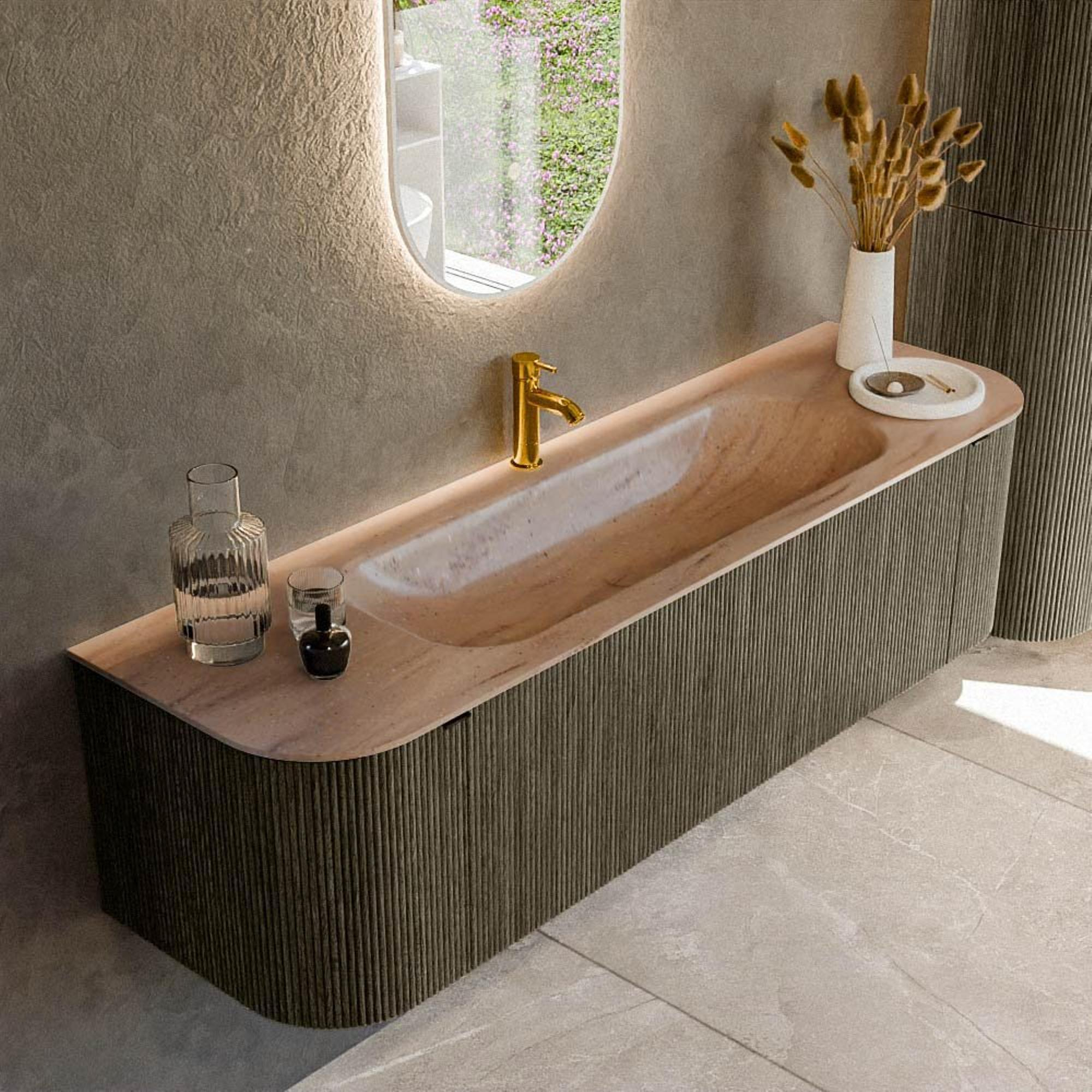 - Lavabo Big Medium au centre, en solid surface de haute qualité de couleur Saba.