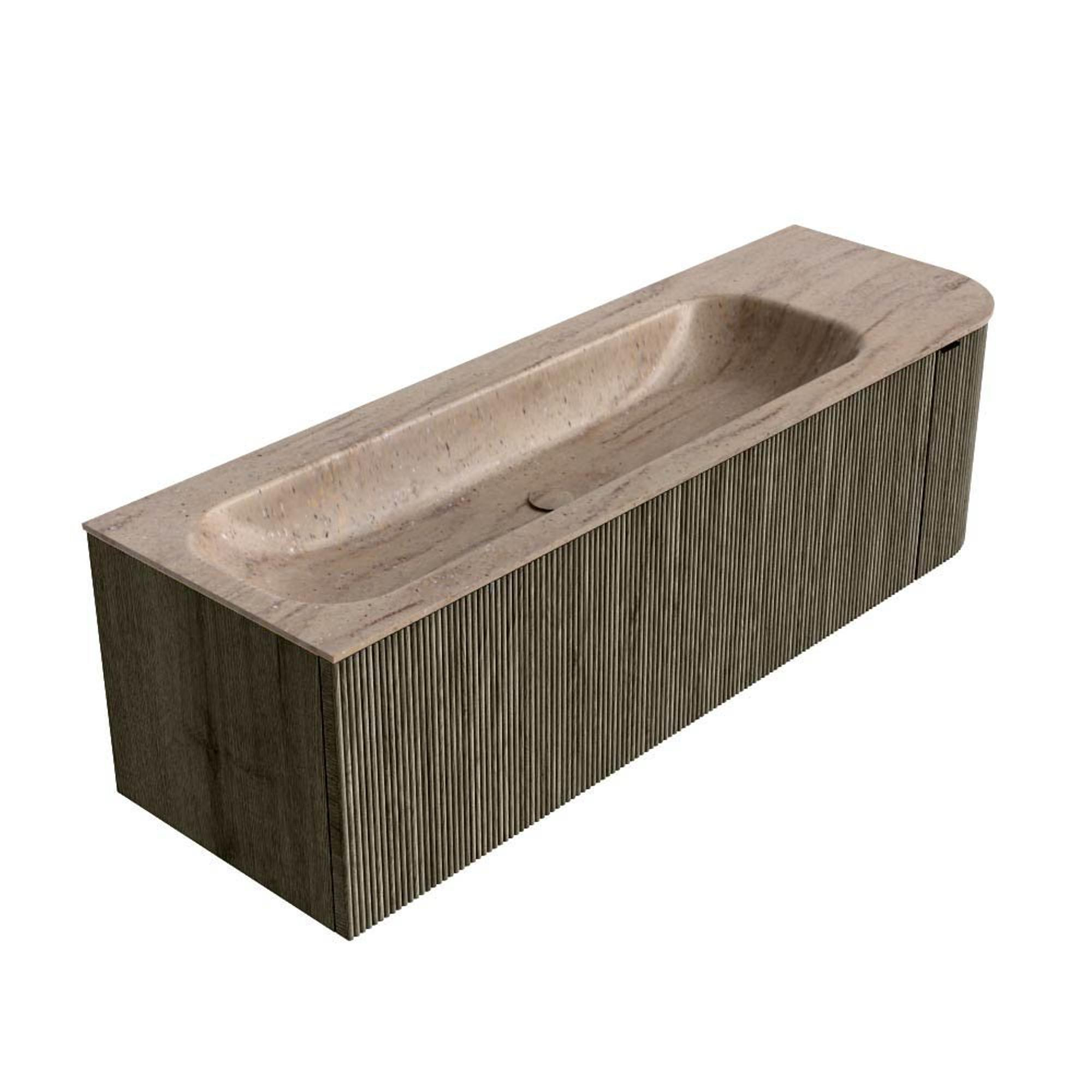 MONDIAZ KURVE-DLUX 145cm meuble de salle de bains arrondi Droite couleur Shadow avec 1 tiroir et 1 porte. Lavabo BIG LARGE Gauche 1 trou de robinet Saba.