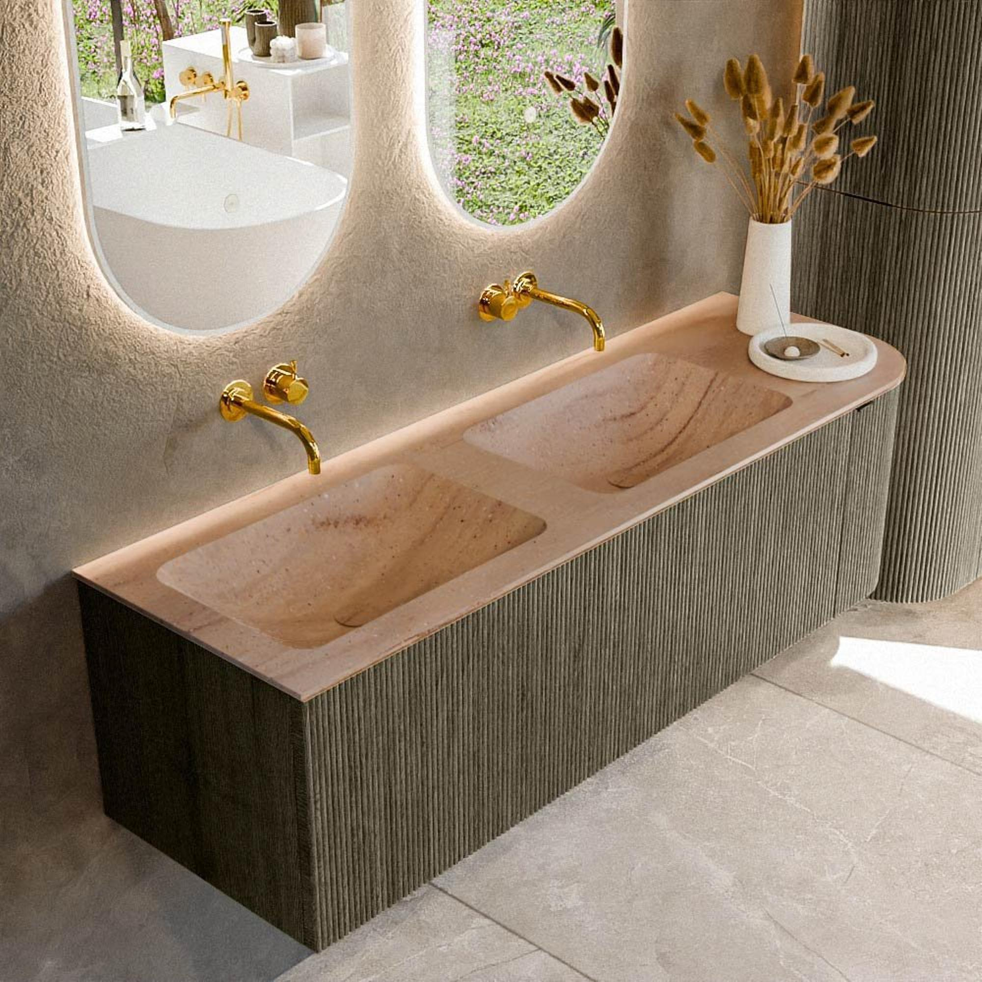 - Lavabo double LEAF, cuve à gauche, parfait pour une utilisation simultanée par deux personnes.