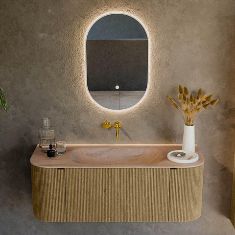 Vous recherchez un meuble de salle de bains luxueux qui devient véritablement le point central de votre salle de bains, sans faire de compromis sur la facilité d’utilisation ? Ce modèle généreux de 120 cm de large est idéal pour les salles de bains de taille moyenne à grande et combine une forme douce et organique avec beaucoup d’espace de rangement pratique. Les angles arrondis donnent un caractère chaleureux et moderne qui s’intègre parfaitement dans les intérieurs contemporains, hôtel-chic et scandinaves. Grâce au tiroir profond et à l’espace de rangement pratique dans l’armoire, vous rangez toutes vos affaires du quotidien de manière ordonnée, tandis que le lavabo placé au centre offre une hauteur de travail confortable et une symétrie agréable dans la pièce. Vous montez le robinet séparément sur le plan ou au mur, ce qui vous laisse toute la liberté de définir votre propre style.