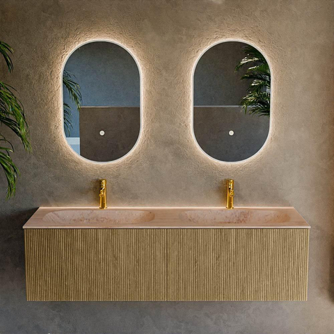 MONDIAZ KURVE-DLUX 150cm badmeubel kleur Dusk met 2 lades en 0 deuren. Wastafel STOR SMALL Dubbel 2 kraangaten Saba.