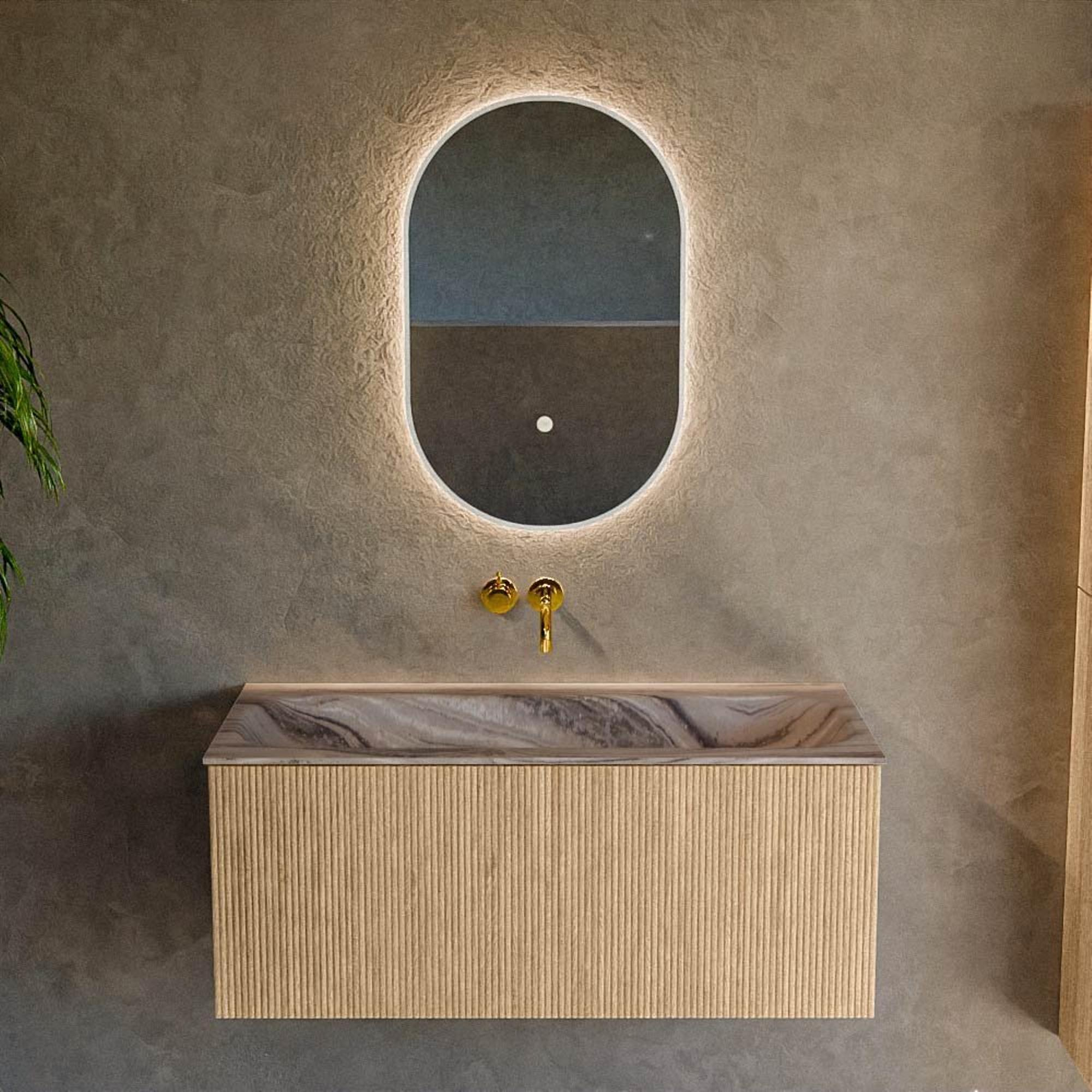 MONDIAZ KURVE-DLUX 100cm badmeubel kleur Oak met 1 lade en 0 deuren. Wastafel BIG MEDIUM Midden zonder kraangat Sombra.