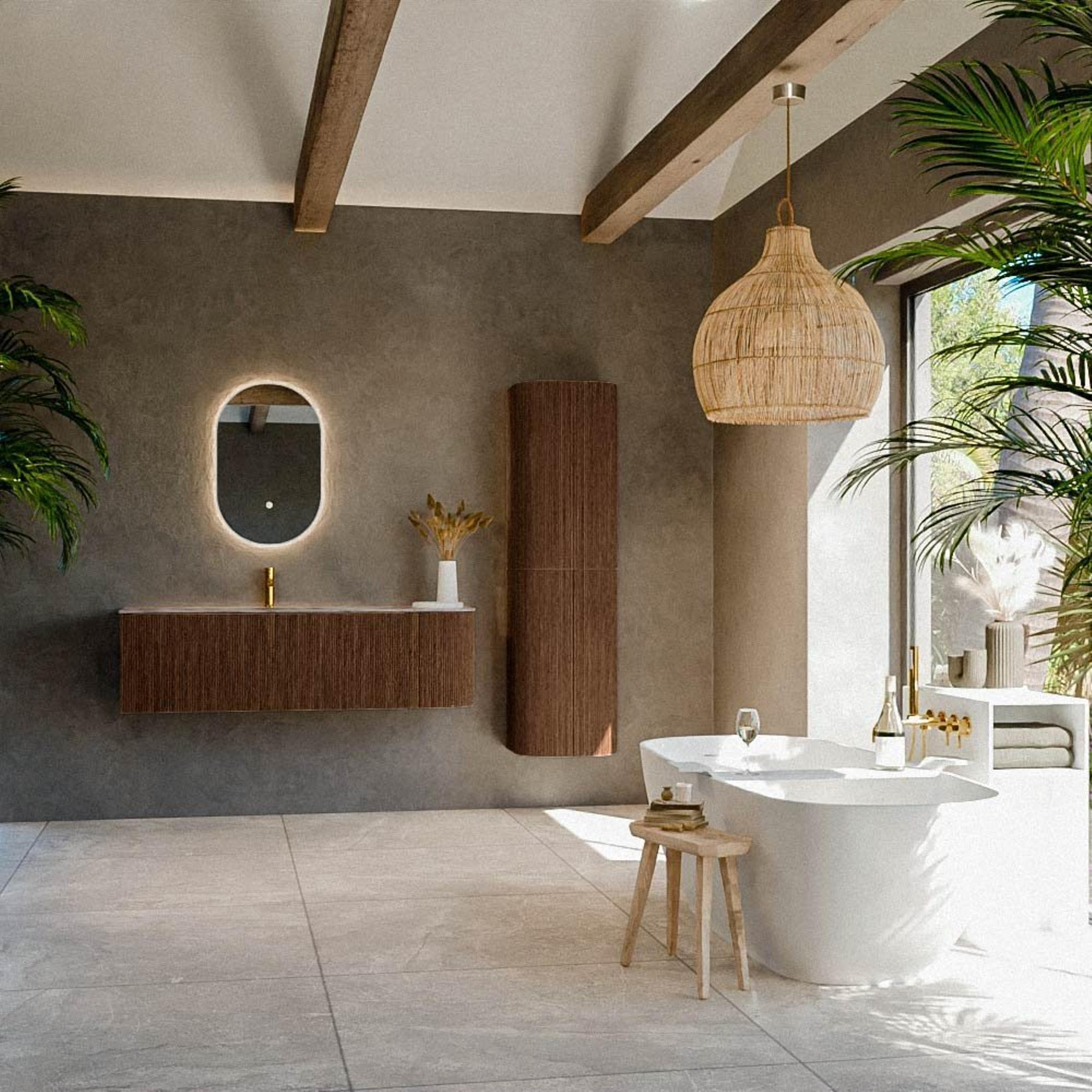 - Teinte Walnut avec façade à lamelles pour un look bois chaleureux et luxueux et une texture marquante.