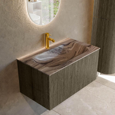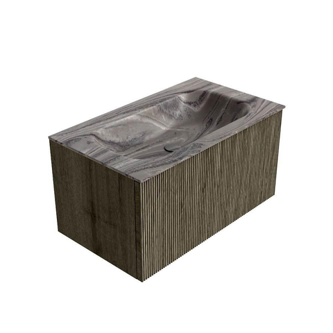 MONDIAZ KURVE-DLUX Meuble de salle de bains 80cm couleur Shadow avec 1 tiroir et 0 porte. Lavabo BIG SMALL Central 1 trou de robinet Sombra.