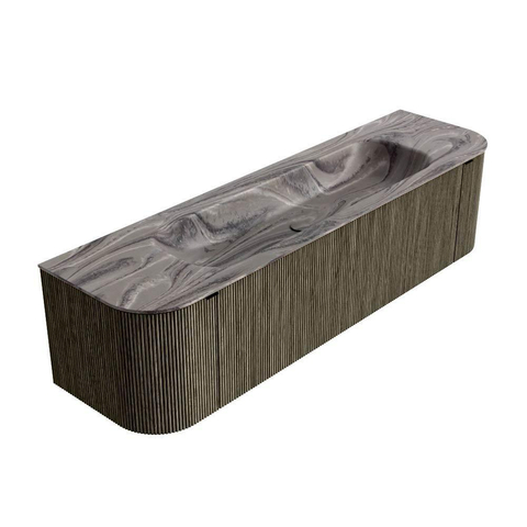 MONDIAZ KURVE-DLUX Meuble de salle de bains 170cm arrondi Gauche + Droite couleur Shadow avec 1 tiroir et 2 portes. Vasque BIG LARGE Central 2 trous de robinet Sombra.
