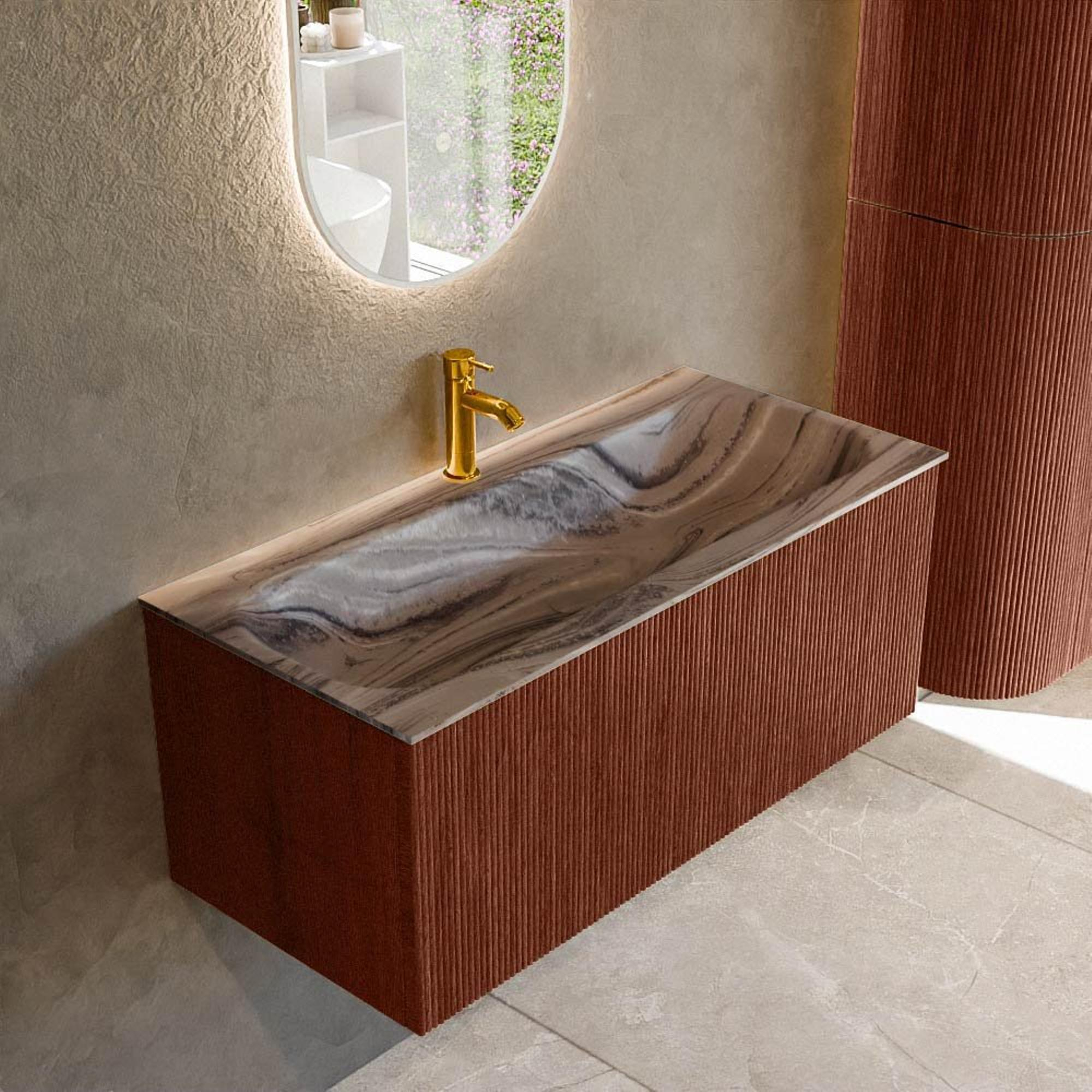 MONDIAZ KURVE-DLUX Meuble de salle de bains 100cm couleur Ruby avec 1 tiroir et 0 porte. Lavabo BIG MEDIUM Central 1 trou de robinet Sombra.