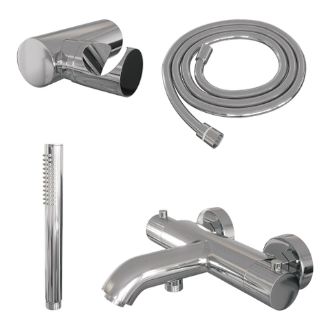 - Ensemble complet avec mitigeur thermostatique, douchette à barre, flexible de douche et support mural