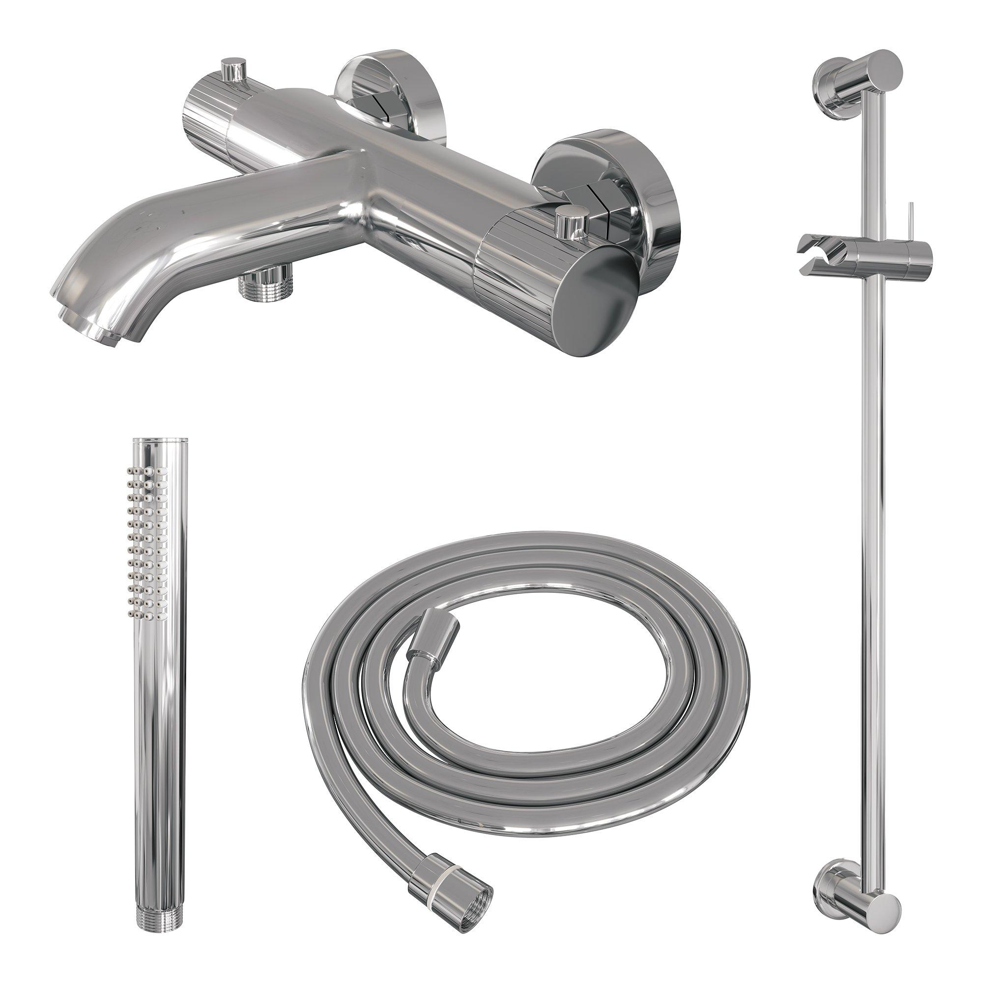 BRAUER Stripe Mitigeur thermostatique pour douche de bain - SET 01 - apparent - barre coulissante - douchette à main - flexible de douche - chrome