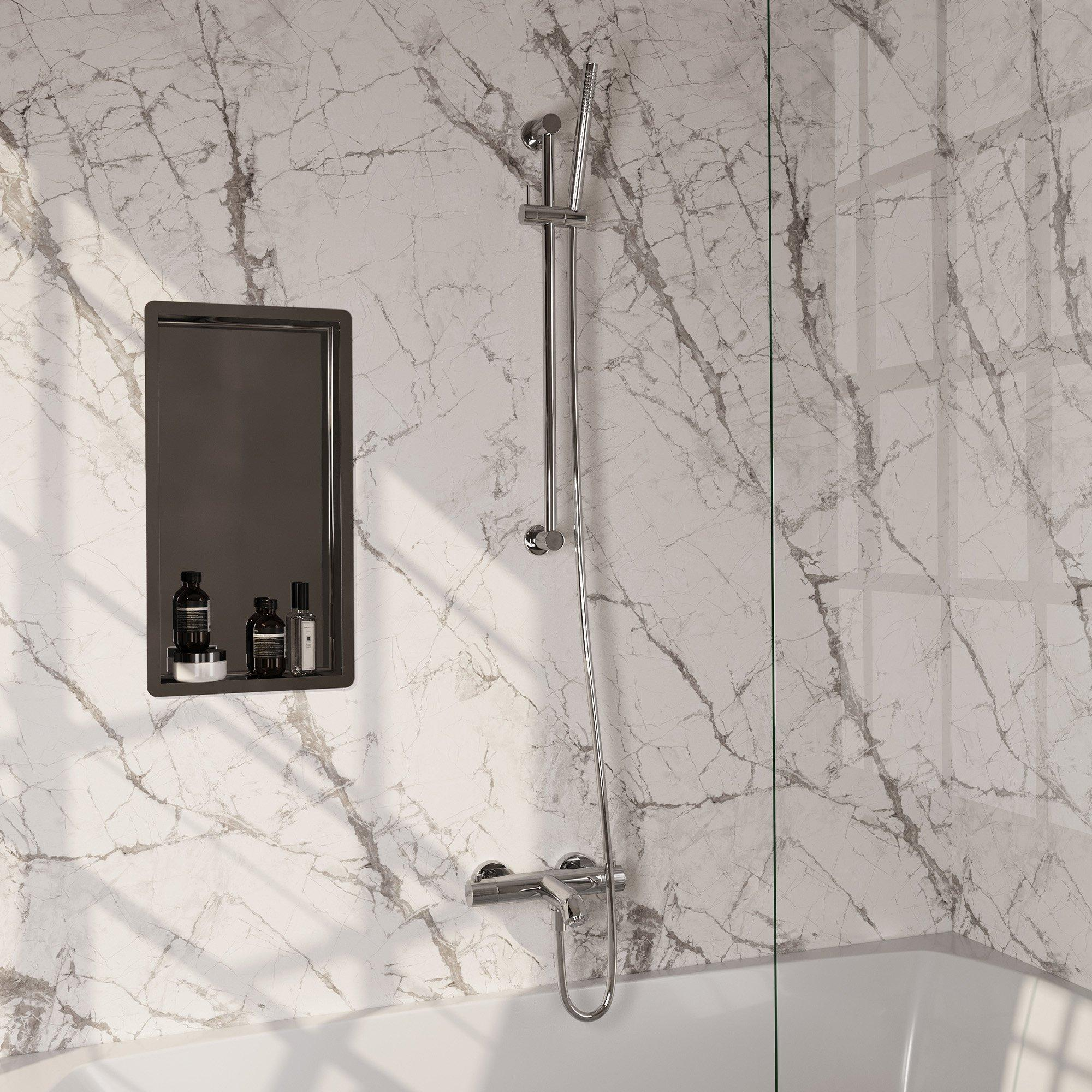 Le mitigeur thermostatique garantit une température d’eau constante, ce qui est non seulement confortable mais aussi sûr, notamment pour les familles avec enfants. Avec la commande intuitive, vous réglez facilement la température désirée, tandis que la barre coulissante et la douchette à main assurent une flexibilité maximale pendant la douche. Le flexible de douche fourni est souple et de haute qualité, vous permettant de manœuvrer sans effort. Cela rend la douche non seulement plus agréable, mais aussi plus efficace. Grâce à cette combinaison intelligente de composants, vous bénéficiez d’une solution de douche complète parfaitement adaptée à vos besoins.