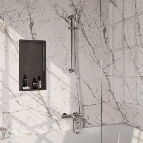 La finition chromée haute brillance confère à cet ensemble un aspect intemporel et luxueux qui s’intègre parfaitement dans toute salle de bains. Le design épuré du mitigeur et des accessoires assure un look moderne et soigné, qui s’adapte aisément à différents styles d’intérieur. Grâce à la finition brillante, la lumière se reflète subtilement, agrandissant visuellement l’espace et créant une atmosphère fraîche. Avec ce mitigeur thermostatique pour douche de bain, vous ajoutez non seulement de la fonctionnalité, mais aussi une touche d’élégance qui donne un plus à votre salle de bains.