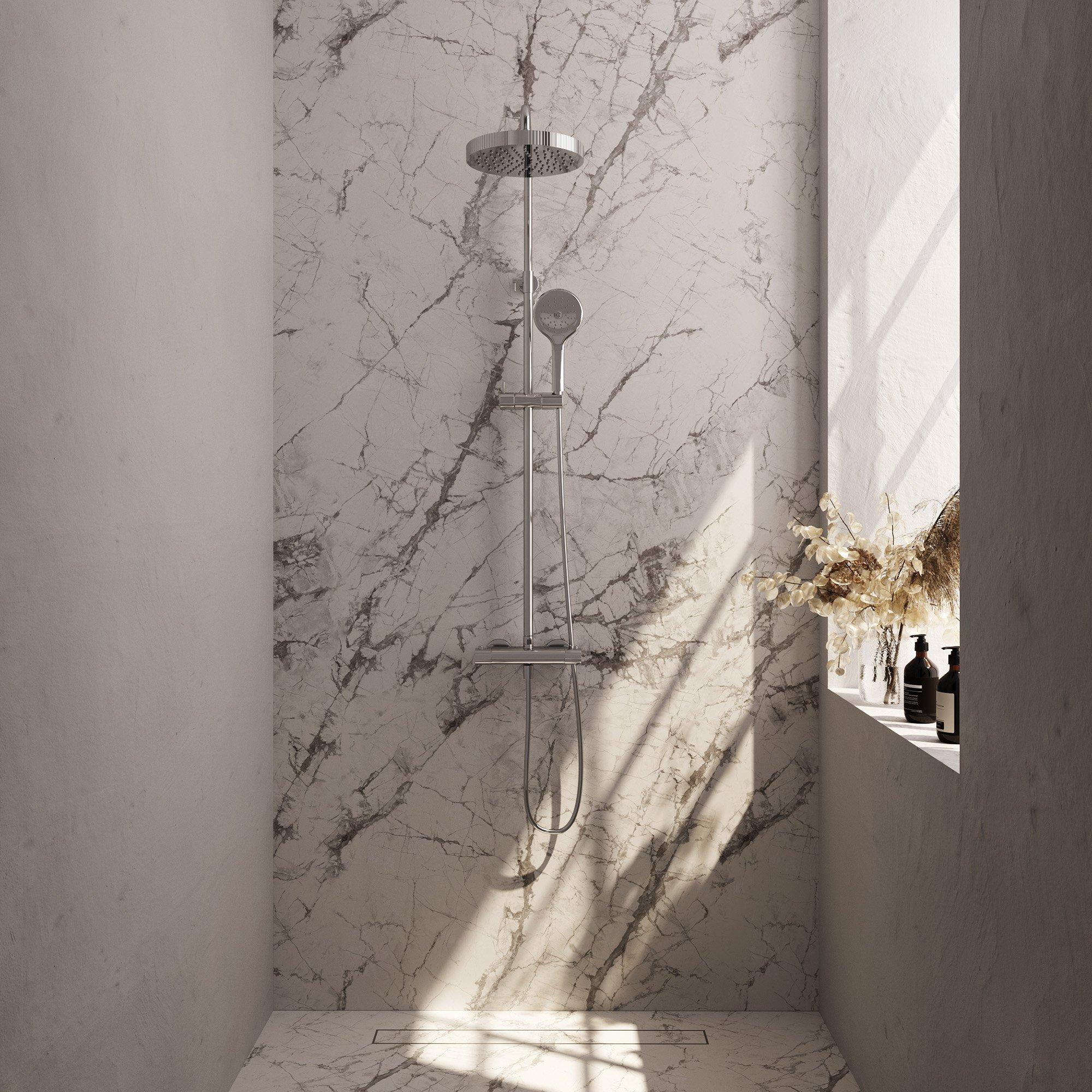 Fabriqué en laiton de haute qualité et doté d’un revêtement chromé robuste, cet ensemble de douche de tête résiste aux sollicitations quotidiennes et aux conditions humides de la salle de bains. Le matériau est résistant à la corrosion, ce qui permet à l’ensemble de conserver son éclat et sa qualité, même après des années d’utilisation. Le robinet thermostatique assure en outre une température constante, ce qui offre non seulement du confort, mais prolonge aussi la durée de vie du produit. Vous investissez ainsi dans une solution durable qui maintient votre salle de bains fiable et belle pendant de nombreuses années.