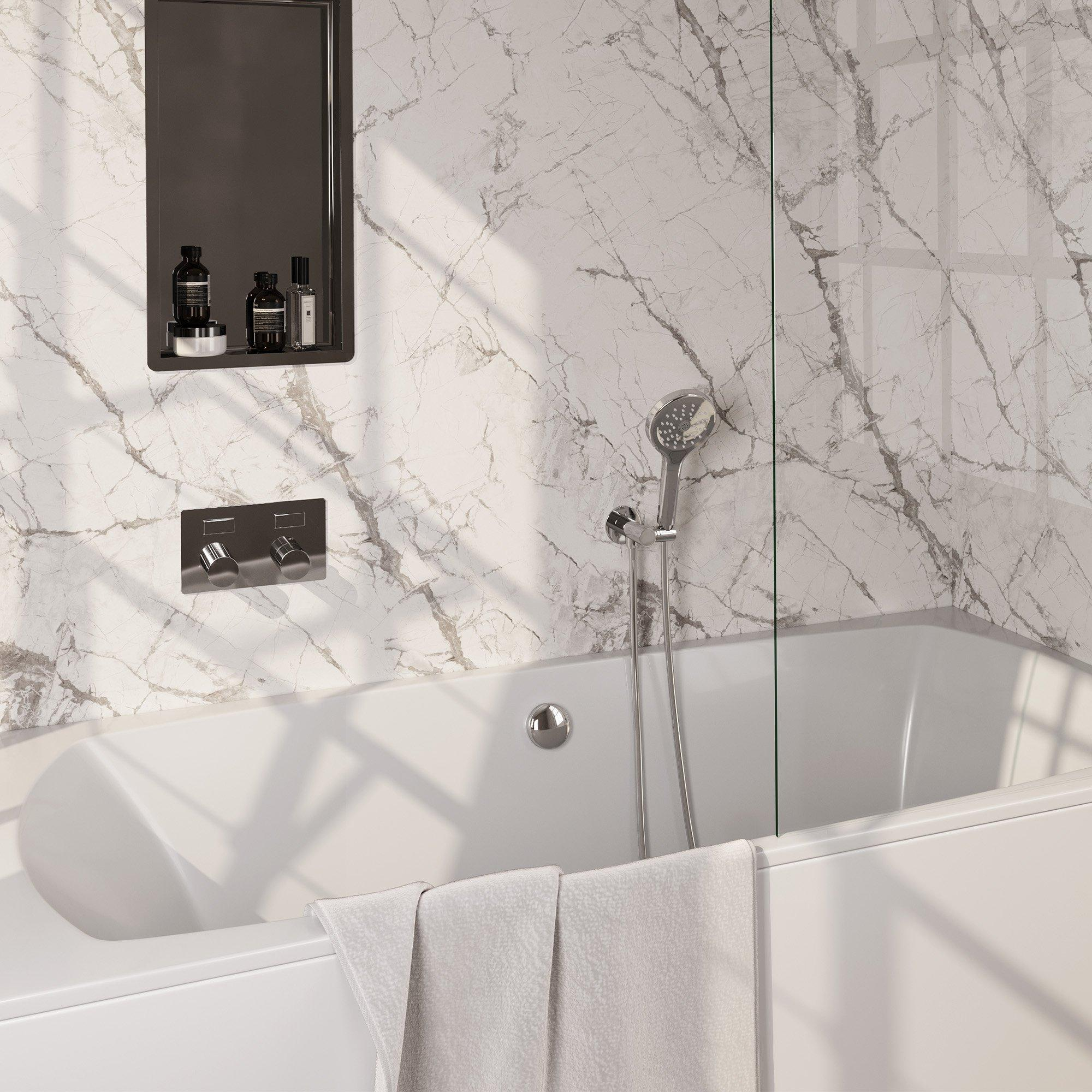 Ce set contient tout ce dont vous avez besoin pour une combinaison complète de remplissage de baignoire avec un confort supplémentaire : un mitigeur thermostatique avec boutons-poussoirs, une douchette à trois positions, un flexible de douche flexible et un coude mural. La commande par boutons-poussoirs est simple et sûre, vous permettant de passer rapidement du remplissage de la baignoire à la douche. La douchette offre plusieurs positions, vous permettant de choisir la puissance ou la douceur du jet. Grâce à la pose encastrée, l'ensemble reste épuré et peu encombrant, ce qui est idéal pour les petites comme pour les grandes salles de bains. Vous profitez ainsi d'une fonctionnalité maximale sans compromis sur le design.