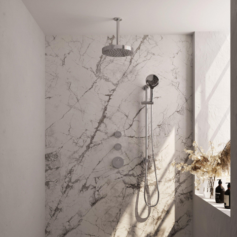 Ce set comprend une pomme de douche de 25 cm, un bras plafond, une douchette à trois positions, un flexible de douche flexible et une barre coulissante intégrée. Cela permet d’ajuster la douche entièrement selon vos souhaits. Le robinet thermostatique assure une température constante, vous n’êtes donc plus jamais surpris par de l’eau soudainement froide ou chaude. La douchette à plusieurs positions offre polyvalence, idéale pour rincer précisément ou laver les enfants et les animaux domestiques. La barre coulissante facilite le placement de la douchette à la hauteur parfaite. Vous profitez ainsi d’une douche facile à utiliser et confortable qui répond à tous vos besoins.