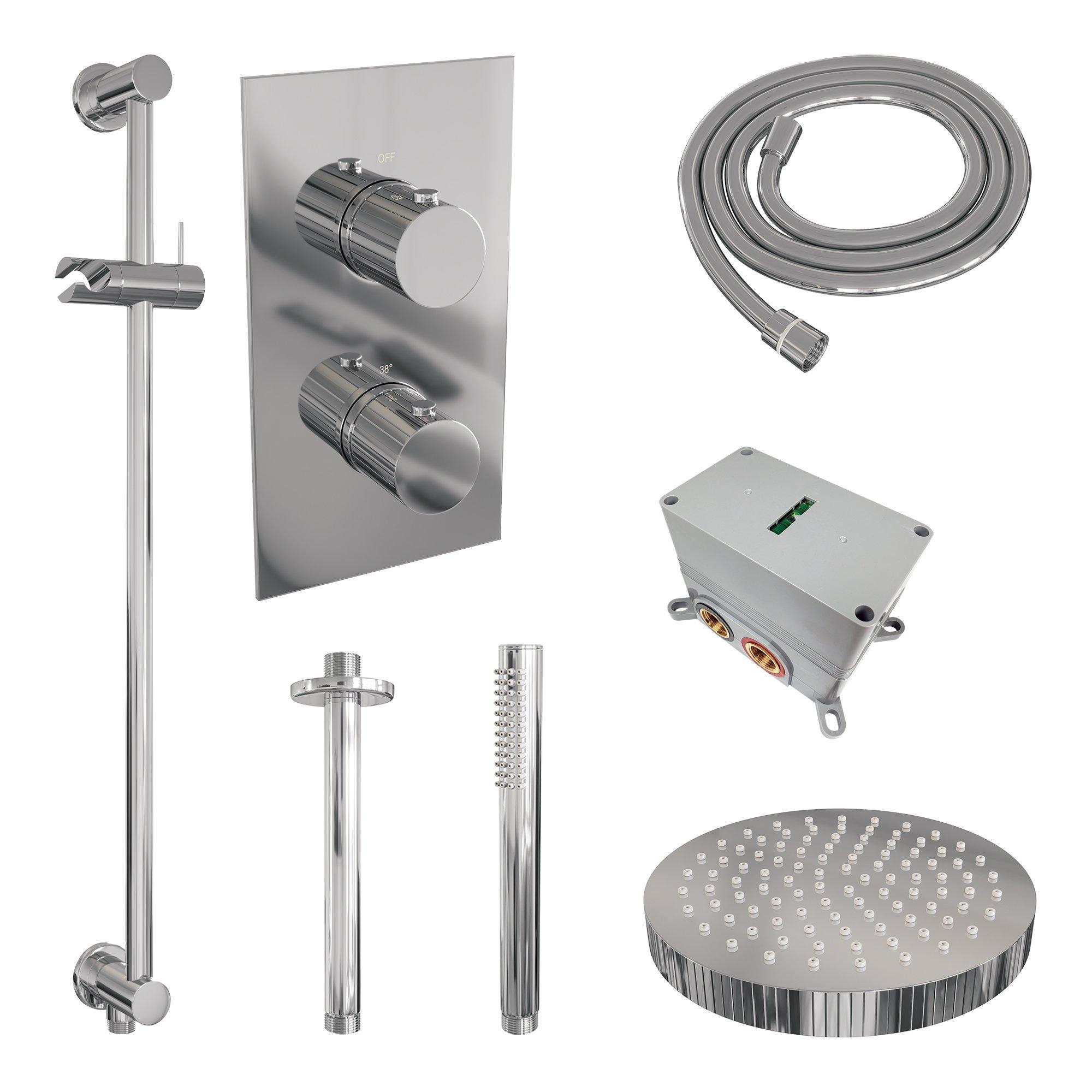 BRAUER Stripe Douche de tête thermostatique encastrée - 3 voies - rectangulaire - SET 21 - pomme de douche 25 cm - bras de plafond - douchette barre - flexible de douche - barre de douche intégrée - chromé