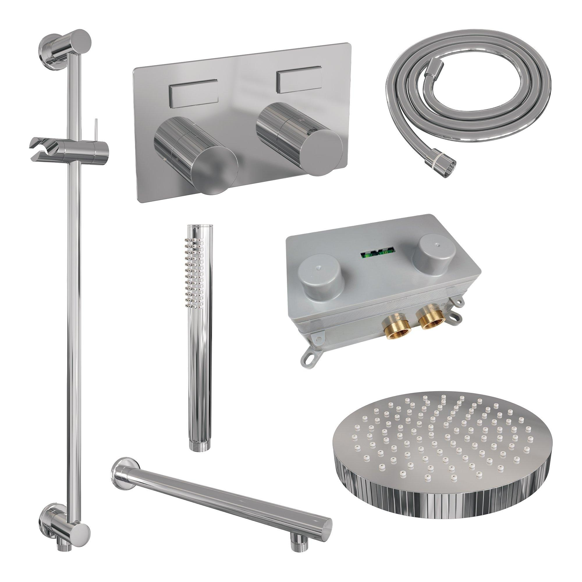BRAUER Stripe Douche de tête thermostatique encastrable - boutons-poussoirs - SET 31 - pomme de douche 25cm - bras mural droit - douchette à main - flexible de douche - barre coulissante intégrée - chrome