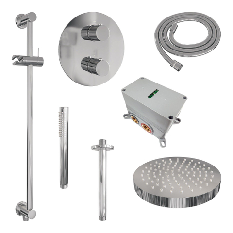 BRAUER Stripe Douche de tête thermostatique encastrée - 3 voies - ronde - SET 45 - pomme de douche 25cm - bras plafond - douchette à main avec barre coulissante intégrée - flexible de douche - chrome