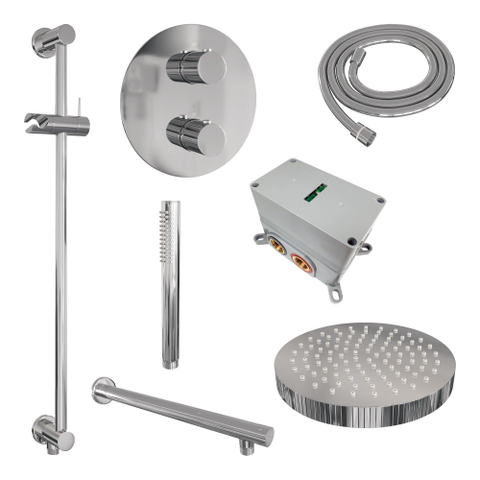 BRAUER Stripe Douche de pluie thermostatique encastrable - 3 voies - ronde - SET 43 - pomme de douche 25cm - bras mural droit - douchette à main - flexible de douche - barre coulissante intégrée - chrome